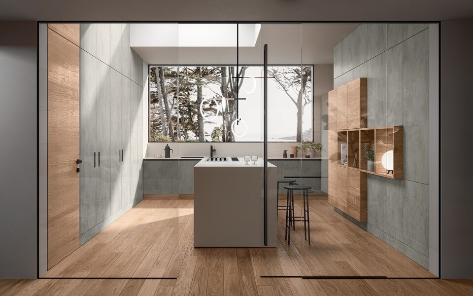 The Garofoli solutions are perfect for those who want to create an integrated and coherent kitchen and living room, playing with glass, wood and lacquered volumes.