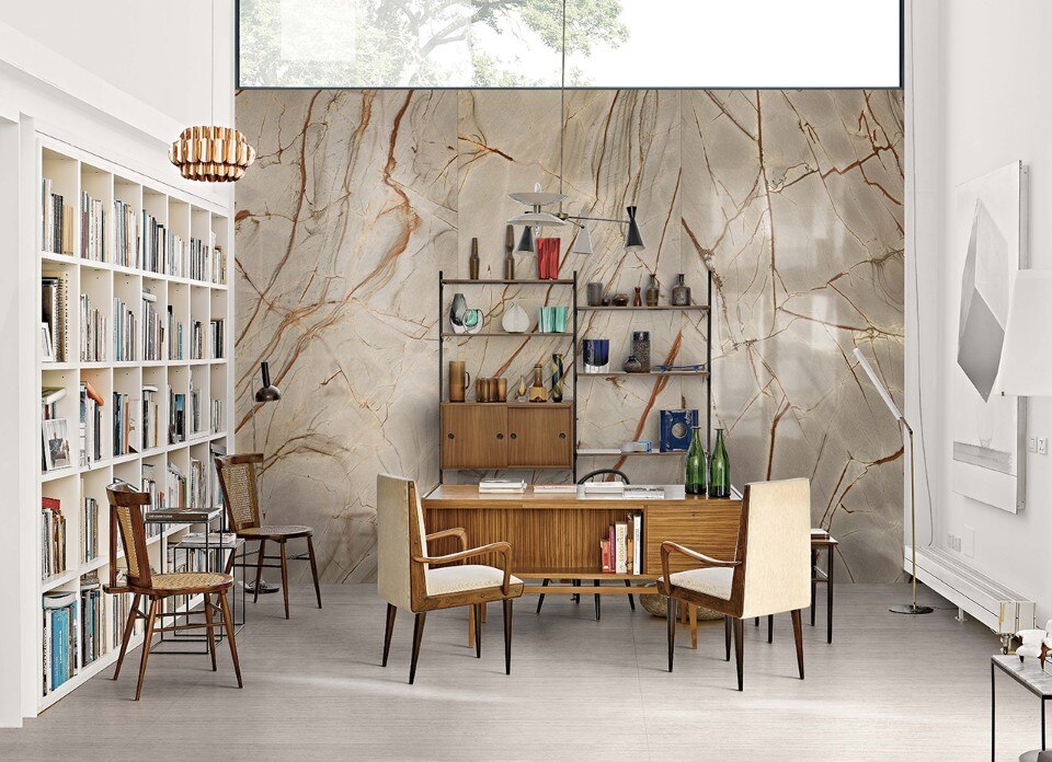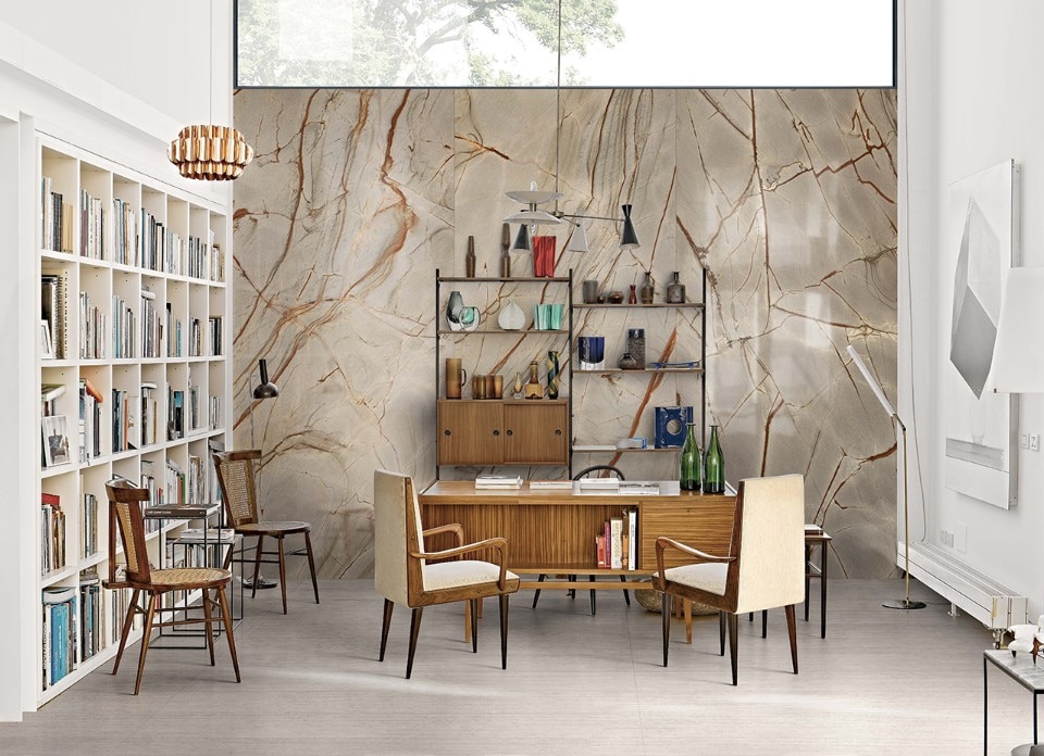 Porcelain stoneware surfaces can be used to introduce nature into man-made spaces and positively influence the feeling of comfort in an environment. Floors, wall surfaces and furnishings become an emotional backdrop that interweaves in a harmonious dialogue of nuances and veining, allowing us to regain that psycho-physical balance from which increasing urbanisation and technology often lead us away.
