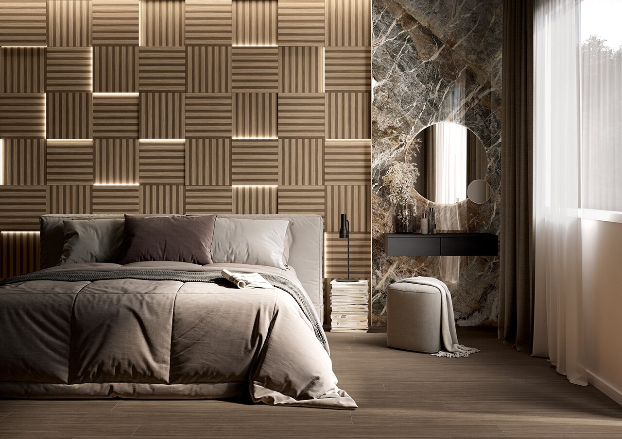 Florim’s new collection returns to nature: marble and wood come together in a refined creative moodboard.