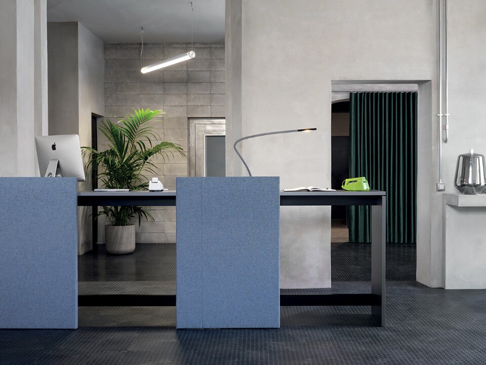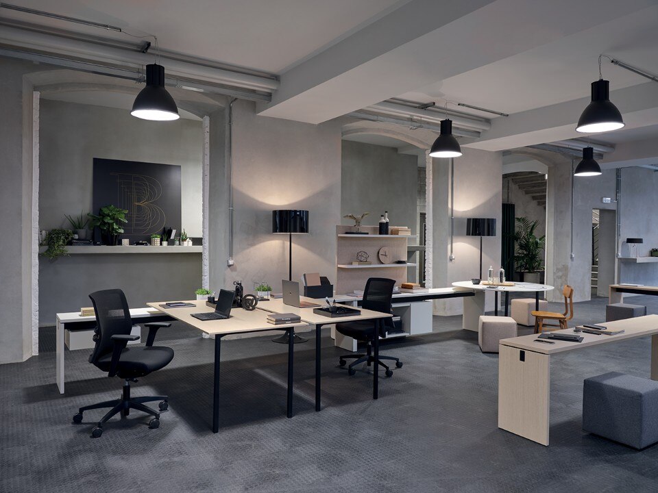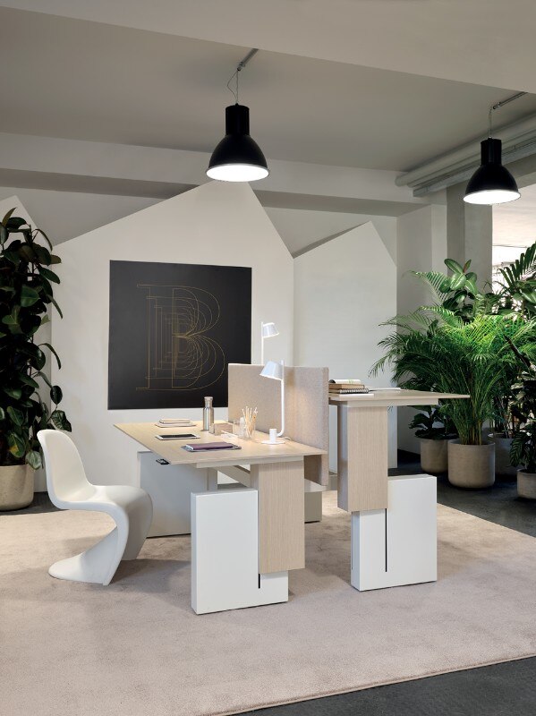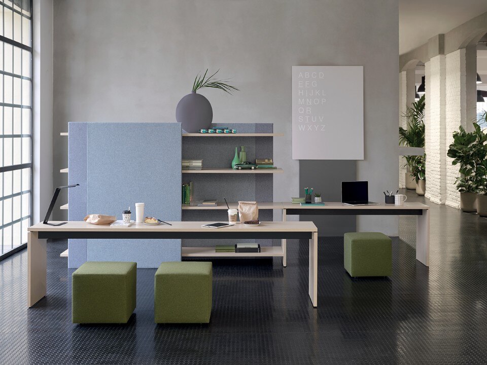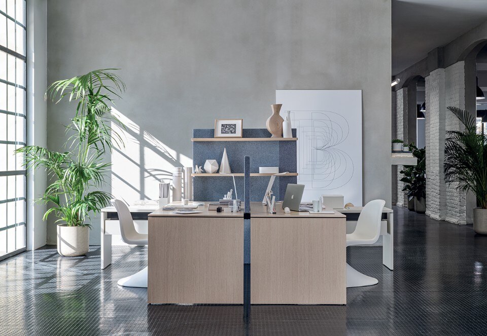 Open spaces are large containers in which individual work is mixed with various activities with colleagues and clients: receptions, meetings, breaks, leisure time and informal sharing. Such complex environments require privacy, acoustic well-being, ergonomic workstations, air quality, functionality and flexibility. The furniture industry is called upon to interpret, with creativity and competence, the new needs of the market and changes in habits through the production of furnishing systems open to continuous evolution.