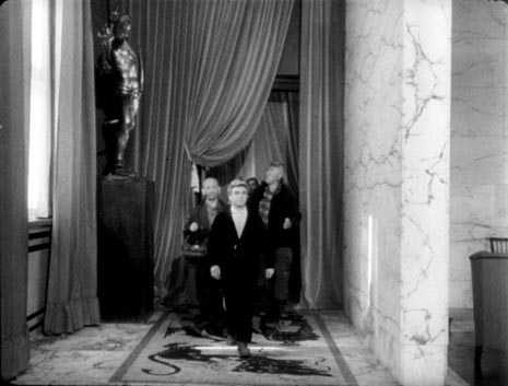 This passage which occurs at the beginning of the second half of the film, has been set by De Sica and Zavattini in one of the most classic and distinct spaces of modern architecture, the Palestra del Duce, by Luigi Moretti, it is constructed in an atmosphere which is totally surreal, underlined by the syncopated rhythm of the music and the quick pace of the butlers and waiters which contrasts with the awkwardness of the delegation.