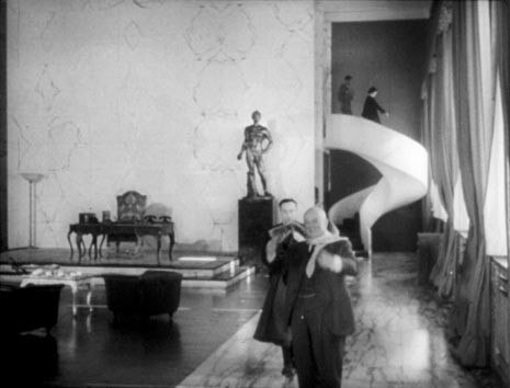 The unreal space in which Clerici and his mother (Milly) go to visit the father who is afflicted with madness originating from syphilis, is non other than the stepped part of the outdoor theatre on the roof of the same building.