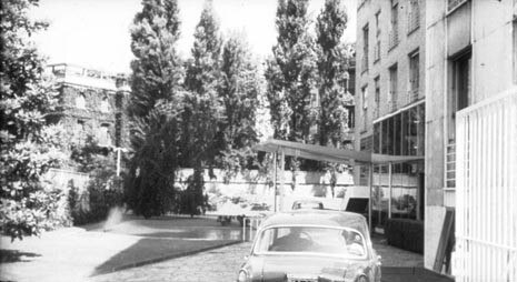 The succession of spaces is described very precisely by the route taken by the two main characters: they arrive by car at the gate, they enter underneath the canopy, go up the stairs behind the window then turn right where the caretaker points them to the lifts.