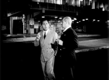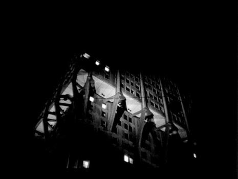 The night scene which moves up to the upper storeys of the tower block seeming to accompany his return home then creates the background for the opening titles.