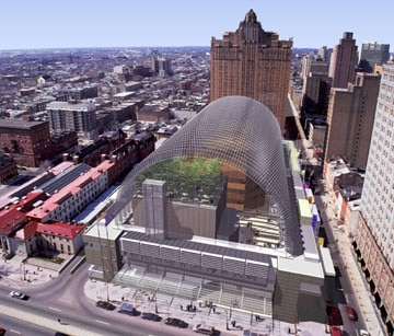 Last weekend saw a series of events to mark the opening of the Kimmel Center for the Performing Arts in Philadelphia, designed by Rafael Viñoly. The building plays strongly on the “hard” exterior made of bricks and render, with a solemn entrance framed by glass walls and charcoal grey granite, and an elegant interior made up chiefly of views of the city, where the main emphasis is on the music.