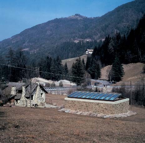 The skilful use of steel tympanums and the composition of the large double window ensure that the structure can also be used at times of particularly harsh weather. Just as rainwater penetrates the shafts and is channelled outside, so too the snow that falls on the glass structures fills the home beneath with white light, departing by way of an external basin placed around the chimney of the central stove that organizes the interior space. The heat of the stove melts the snow, which collects in the basin before being returned to the river. All of this is simple, but the simplicity contains the complexity of Pichler’s work. Every object, every sculpture gathers the fragments of a continual, unstoppable flow. Neither satisfaction nor nostalgia but certainty – the certainty that the greatness of the work lies in the ordinary gesture. This is the key to the interpretation of this small but grand architecture, not a skyscraper, not a large industrial complex, but a ‘little house’ that can only make us think.
