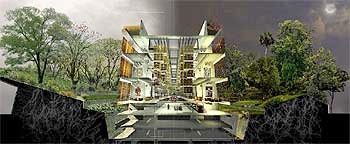 An immense, long arch in a spectacular botanical garden. This is the project by the Mexican architect Alberto Kalach (together with Juan Palomar, Tonatiuh Martinez and Gustavo Lapikau), recent winner of the international competition to design the Biblioteca de México “José Vasconcelos”. Coming second and third were projects by California’s Eric Owen Moss and the British practice, David Chipperfield.