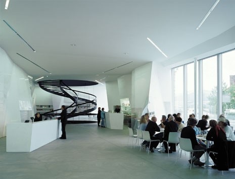 The foyer contains a cafeteria and bookshop. And, beside it, there is a library open for free consultation. Photo Heinrich Helfenstein
