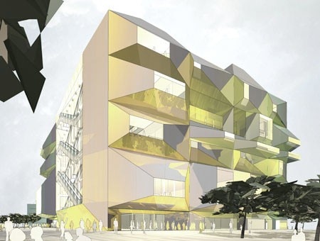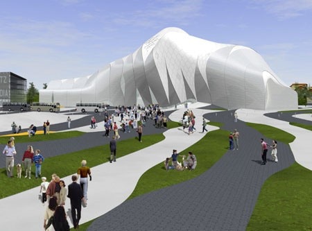 A huge tensile structure made up of hexagonal modules covers the collection of spaces that make up the centre. Three galleries in a rectangular block (covering 1500 square metres) make up the main part of the building with three windows facing in three directions, the cathedral, the station and the castle. Materials used? A mix of timber and metal whilst the membrane is in translucent glass fibre covered in Teflon. Amongst the remaining finalists, second place went to the French practice of Stephane Maupin and Pascal Cribier, third place to Herzog & de Meuron and finally fourth place to Foa, Nox and Dominique Perrault.