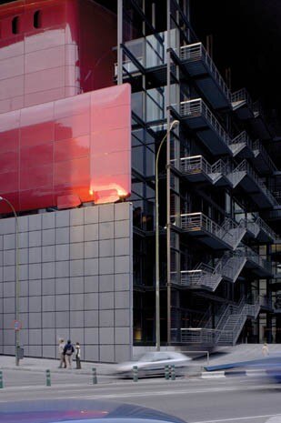It is probably in this conflict between the technological reinterpretation of traditional stone construction and the cartoon version of science-fiction imagery where the project’s Achilles heel is to be found: the granite does not have the severe gravitas of institutional permanence, nor do the fuselages have the exact finish of aeronautical construction, and the cocktail blend is a curdled mayonnaise. Otherwise this red and black Nouvel – which won the 1999 competition against the likes of Dominique Perrault or Juan Navarro Baldeweg – places itself with dignity in the creative register of an architect who has managed to reconcile the seductive imagination of film, advertising or fashion with the French tradition of experimental engineering that stretches from Pierre Chareau to his master Jean Prouvé.