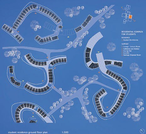 The faculty buildings, each one different from the other, will house laboratories, lecture theatres and teaching rooms whilst the library and administration offices will sit alongside a long pedestrian axis on the south. The existing shape of the land, remaining from the days when the area was used for mining, has offered an ideal solution for the stadium tribune; whilst at the north side an old mine transformed into a city park acts as a link between the campus and the city. The other finalists shortlisted alongside Fuksas were the British practice Allies & Morrison (who came second), Rem Koolhaas and Rafael Viñoly. Work is due to begin as soon as 2007.