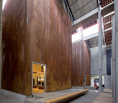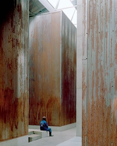Noero spoke of the need in his work to find sanity in the madness of apartheid’s divisive legacy, by making spaces and forms that mediate between extreme conditions. Geometry became a stabilising order; at Red Location, an underlying grid links the township to the museum space, and extends to the serene proportions of the facade elements. The museum’s materiality is also familiar, evoking images of the nearby factory sheds, the rusted corrugated metal of the houses, the timber piling, concrete screeds and packing crates from the port.