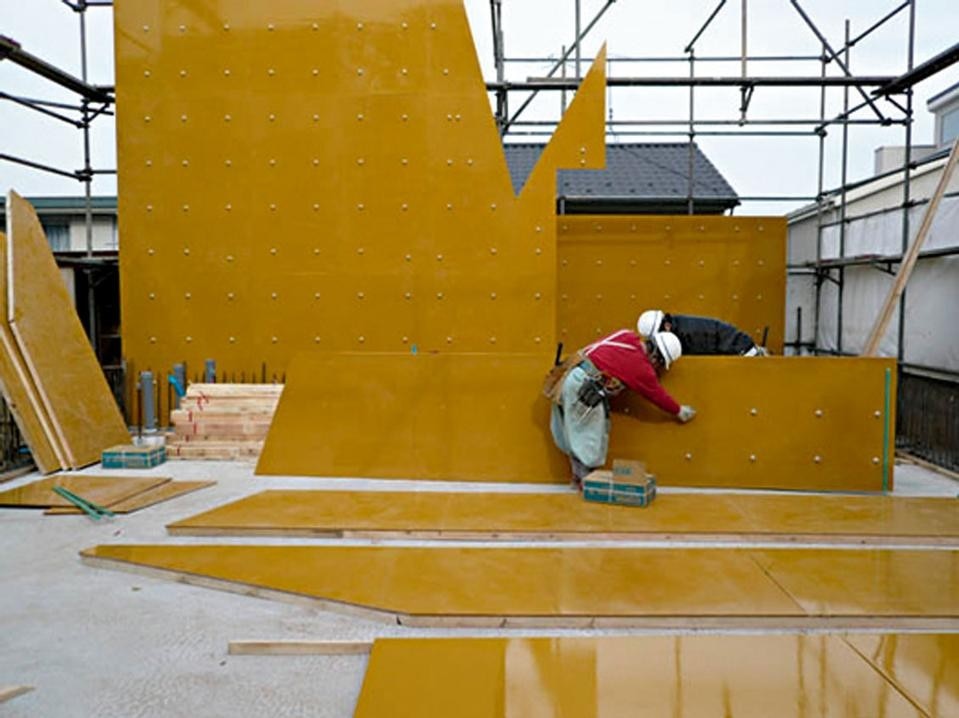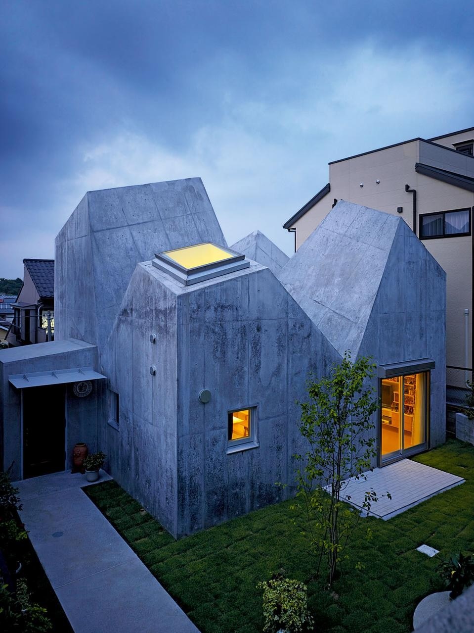 “The roof design is unrestrained because the house is on one storey,” say the architects. “By exploiting this freedom, we wanted to see the interior and exterior as opposite sides of a single object. Additionally, the decision to use reinforced concrete for the structure allowed us to capitalise on the design of folds in the roof. In so doing we were also able to eliminate the need for pillars in the interior space.”