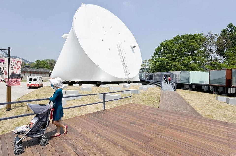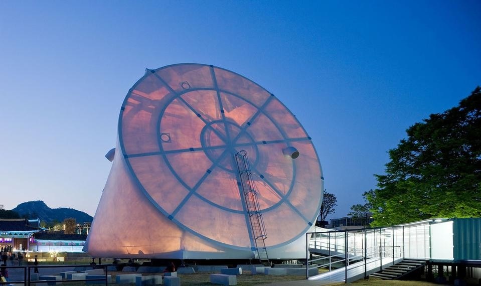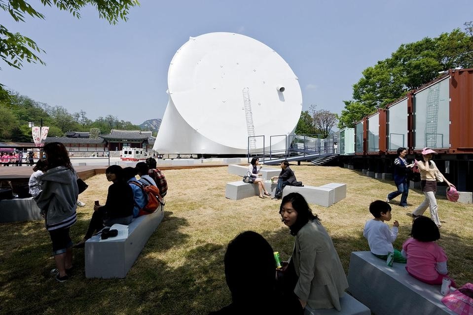 The Transformer is located adjacent to the traditional 16th Century Kyeonghee Palace and adds a modern element to the historical context.