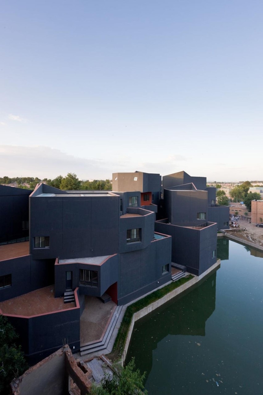 The 20 units on this site are organized to resemble stacked containers in homage to the site’s previous use as an industrial outdoor-storage lot. This creates an expressive configuration and unique spatial quality with a series of accidental spaces acting as blank canvases for the artists to fill with activities. The interplay of volume, void, light and shadow is a catalyst allowing artists and visitors to constantly explore and experiment in the outdoor community space.