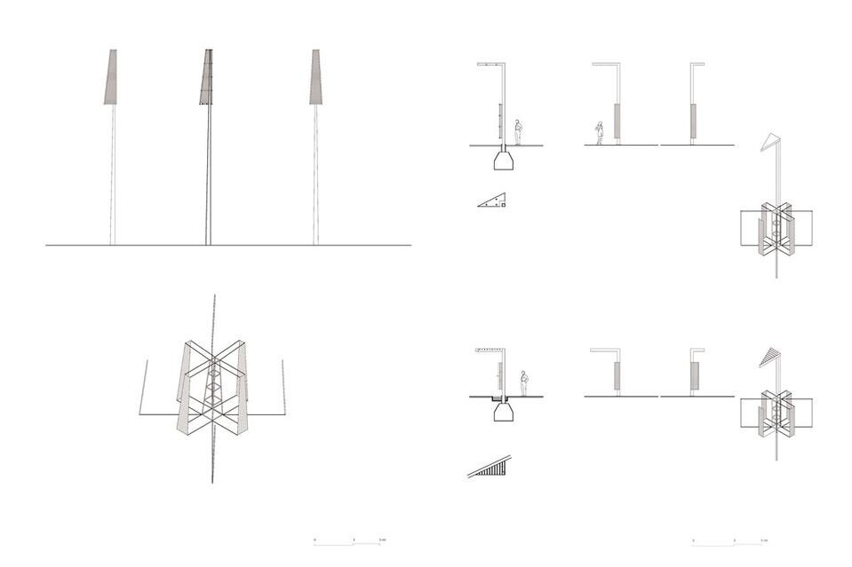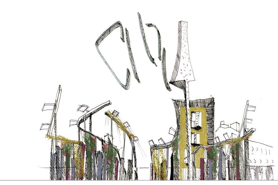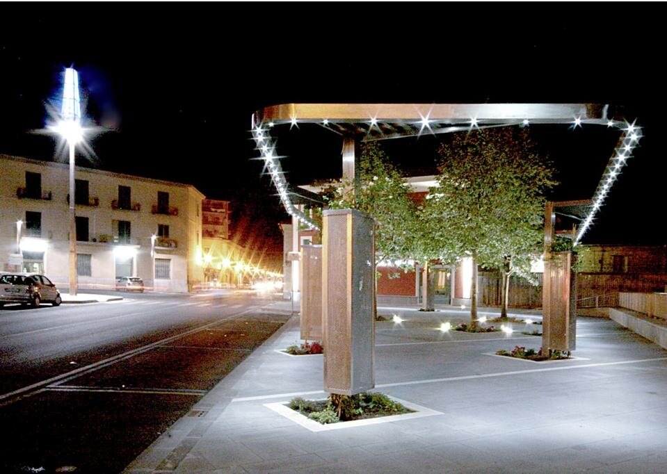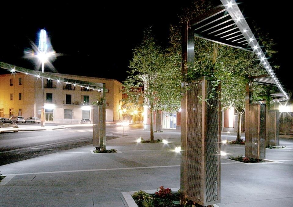 The lights that come on at night are positioned around this ring, which also acts as a brace for various climbing plants that will evoke the effect of a Galerie de Verdure. It is a piazza and a garden, both natural and artificial. At night, the structure turns into a silver band that marks out a new area of the town, emphasised by the single tall design feature. Meanwhile, the evergreen effect of the arbour is provided by helix ivy and wisteria. Cherubino Gambardella