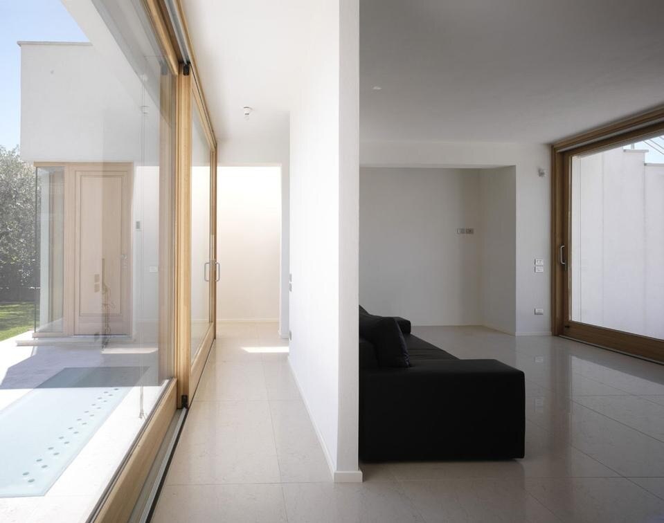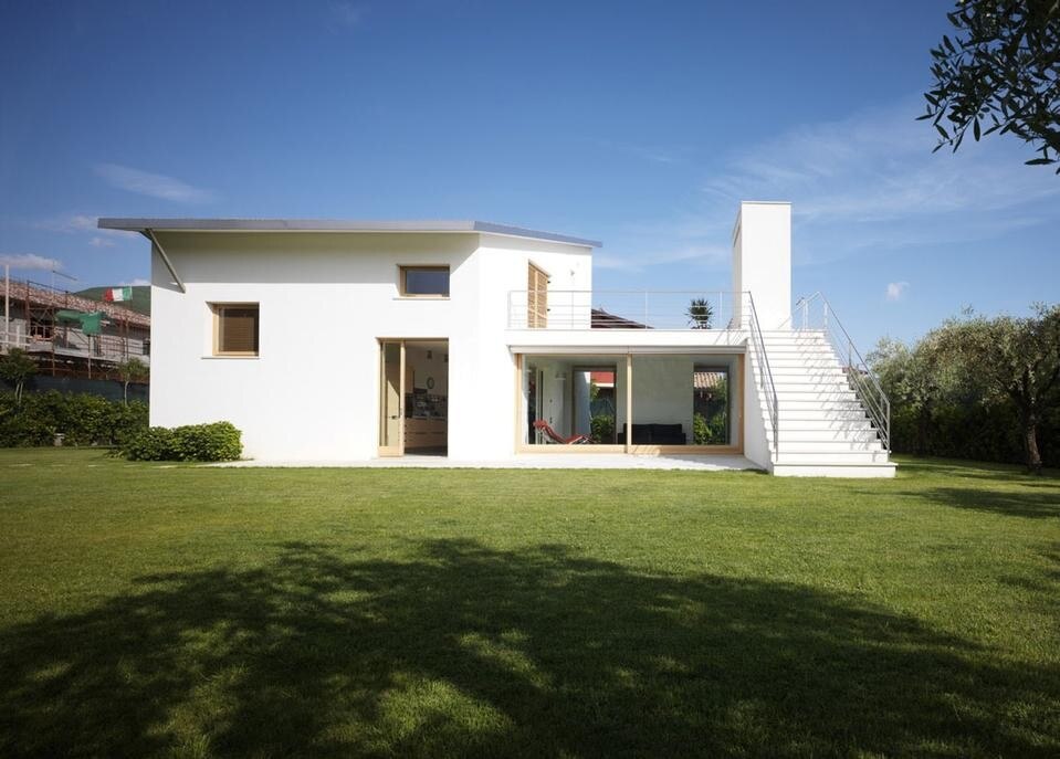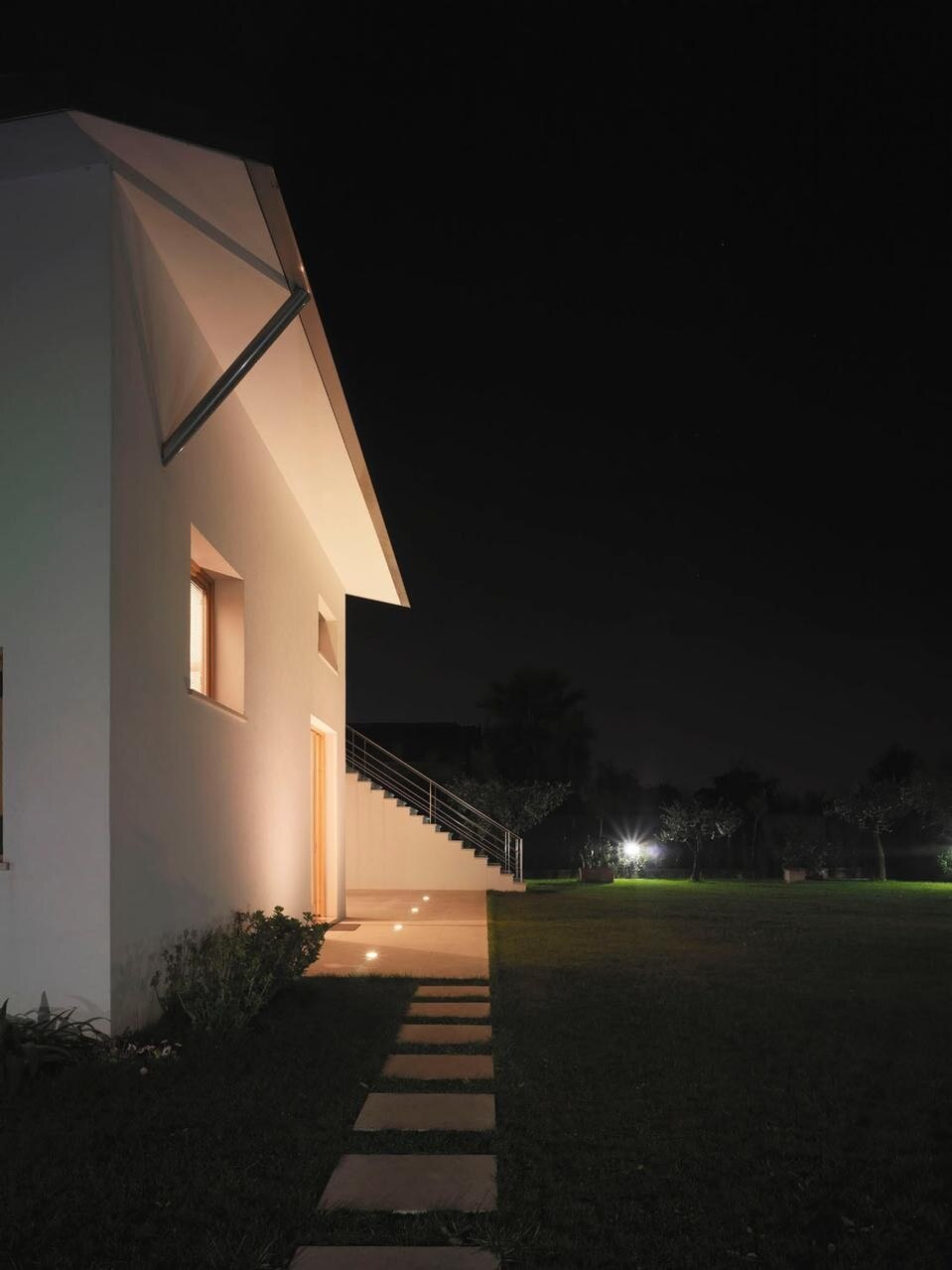 The house is designed by assembling volumes (sectors) on surfaces of contact. In height, the logic of the connection of the topographic levels determines the form of the volumes, that are composed in such a way as to create a layout whose fulcrum is the terrace at first floor.
