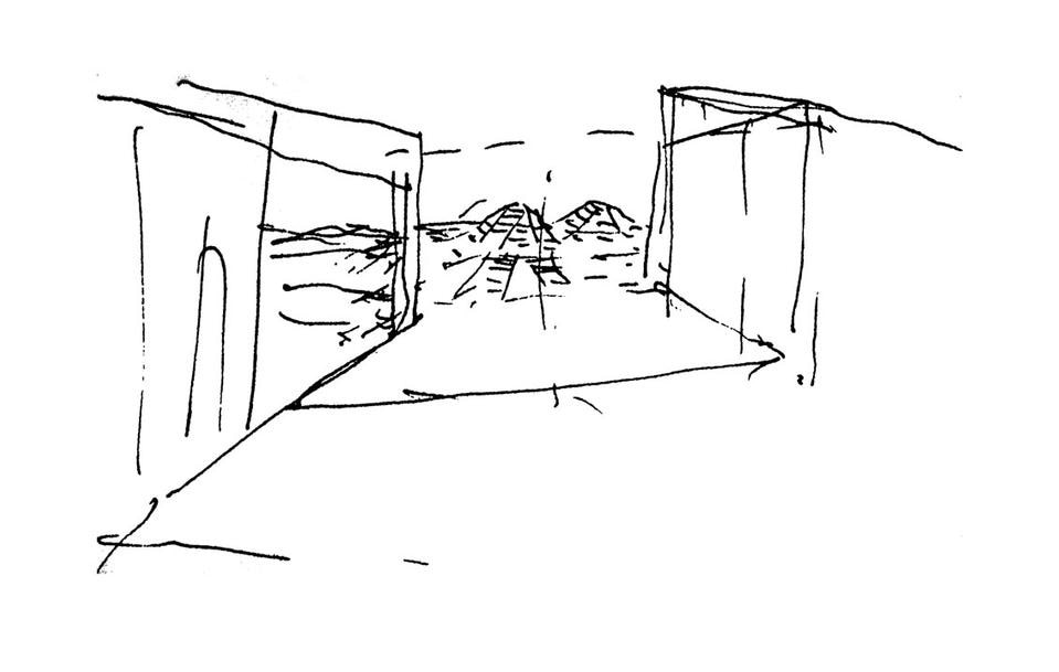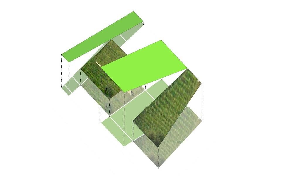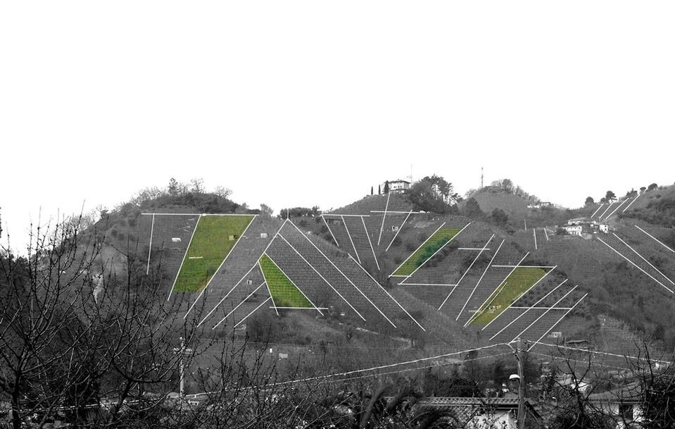 The view of this profiled earth-architecture is particularly evocative of this area. The dialogue with place occurs via a design matrix structured on two factors: a geometric factor - the geometry of the sectors - becomes a compositional vocabulary of the architectural object; a geographical or position-related factor, limits the project to be strongly that seen on the hills.
