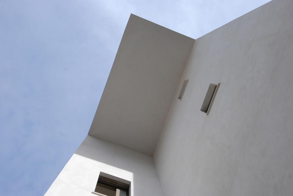 The clients were two brothers, owners of a small plot in the town of Villa San Giovanni, Reggio Calabria. To the south-west, the house borders a building built around 1930: during the design phase, this structure dictated the alignment and volumetric proportions. The house stands alone: it contains a duplex apartment and, on the ground floor, a small medical practice with an adjoining garden area, car park and disabled entrance. The basement is used for storage.