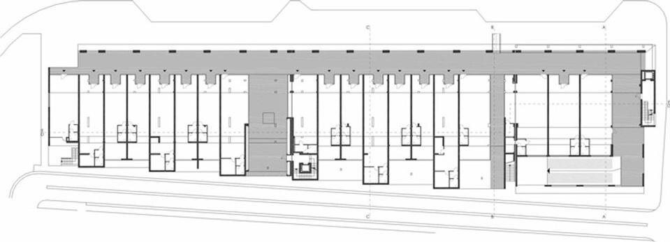 Tipo C: Single-storey three-roomed apartments placed on the south-west corner of the building, making a compacted block that enables the “turning” of the building and introduces the row of “B” buildings.