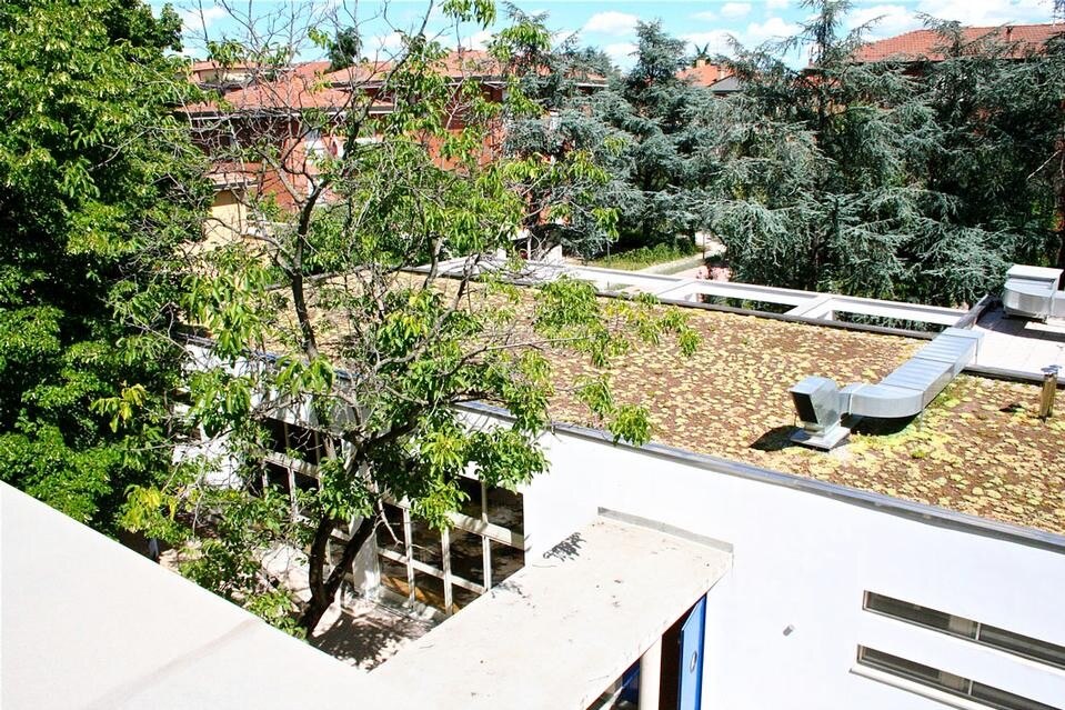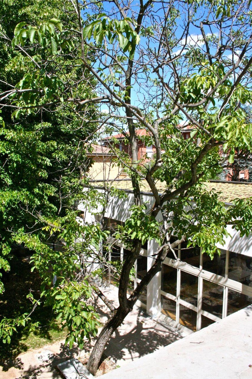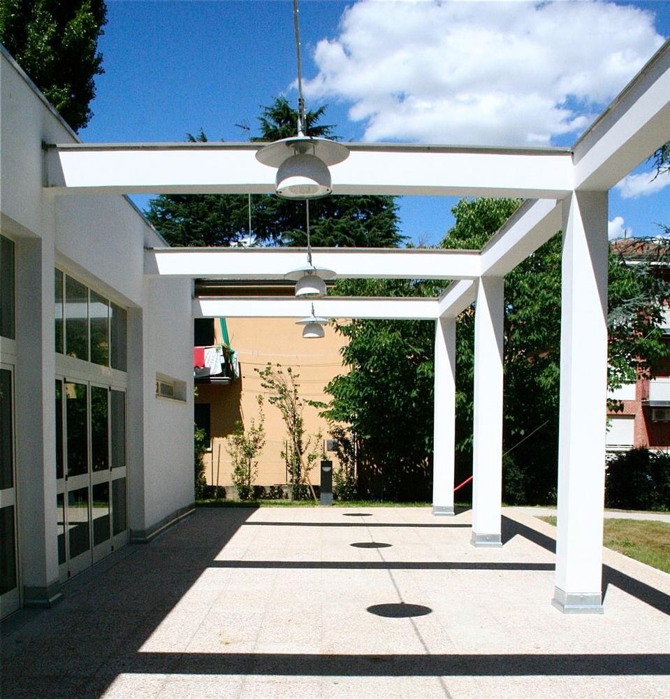 Outside, along the west side, is a structural lattice that frames a paved external area that can be used during winter when it is sunny and that in summer can be surrounded with drapes to create a pleasant shaded area. This small pavilion occupies an area of roughly 250 sqm and will be covered with a roof garden, both for visual purposes and because this type of roof makes a considerable contribution to the wellbeing of the users