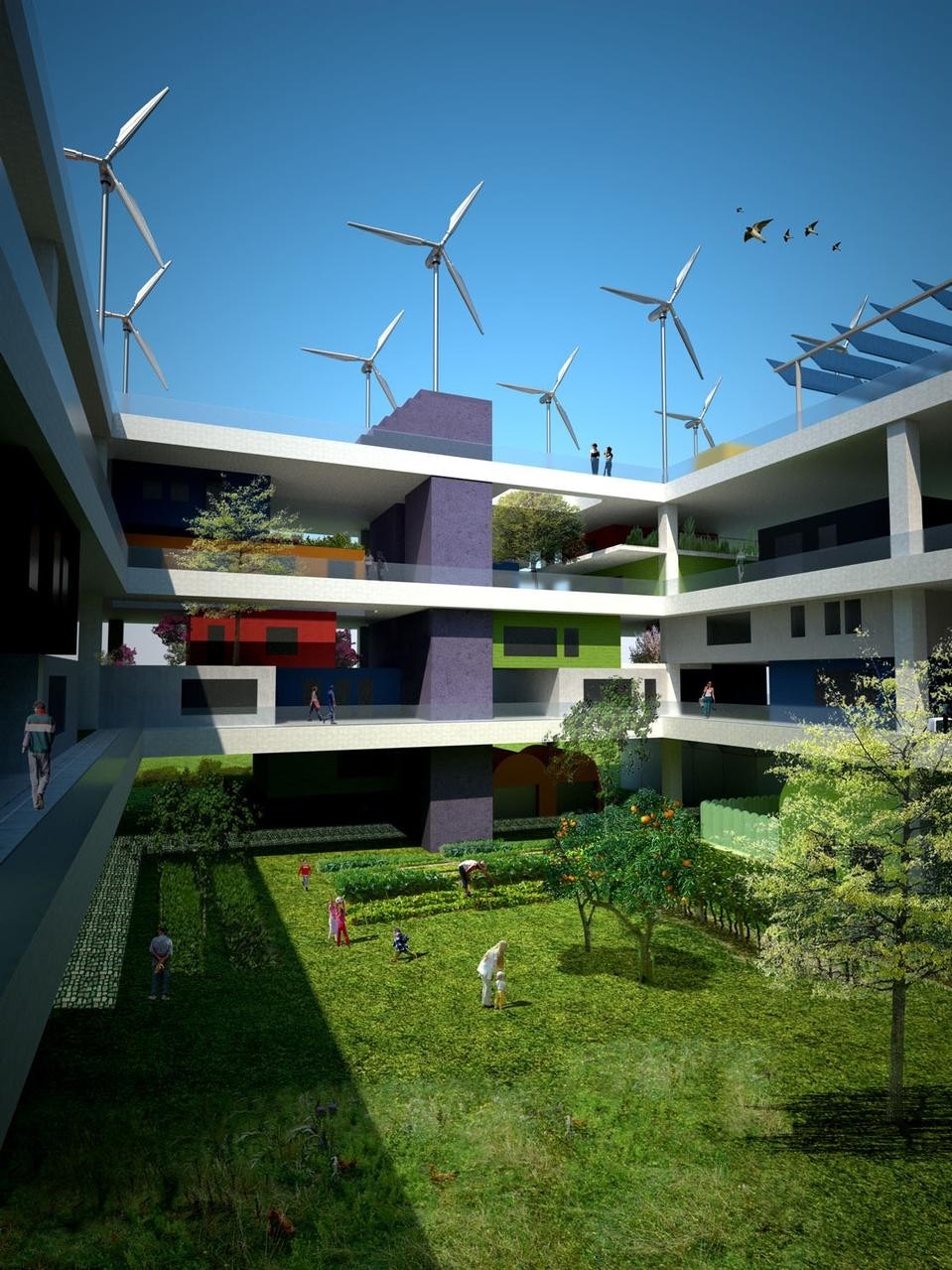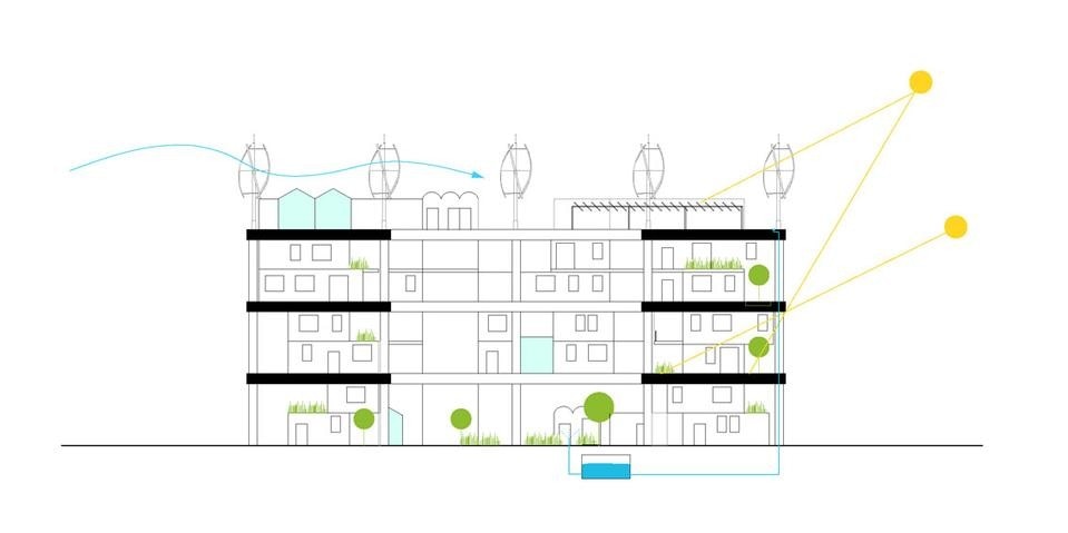 The “Condominio produttivo” was designed as an active structure that can reduce land and energy consumptions. It is productive because it triggers processes of self-sustainability via its allotments and the integration of renewable energy sources.