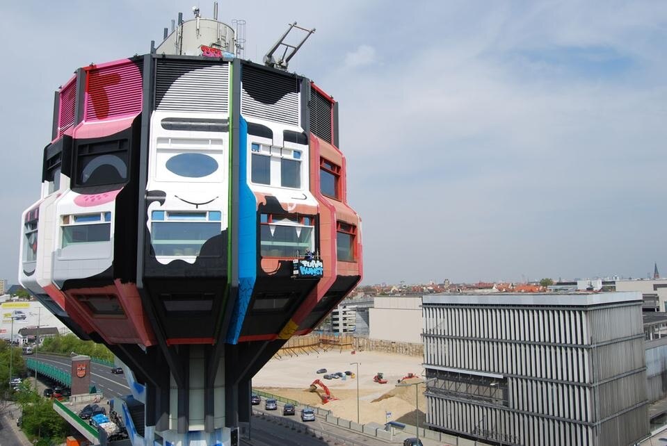 One of the most famous silhouettes in Berlin, a 1970s tower restaurant affectionately known by Berliners as the "Bierpinsel" (Beer Brush), has been transformed into an art gallery and its façade has turned into one of the most complex canvases in Europe.