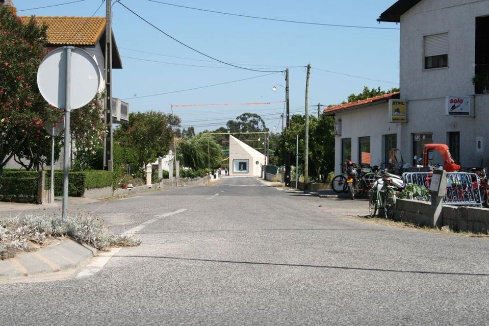The Chapel is built simply and cheaply, with a single-layer coating of limestone gravel, the effect is similar to the local stone. According to the architect the material is to equate the “pyramidal shape of the Chapel with the timelessness of stone construction, invoking also through the colour the stone used in monuments of the region”. It is certainly a curiosity and a brave contribution to its small town. Beatrice Galilee