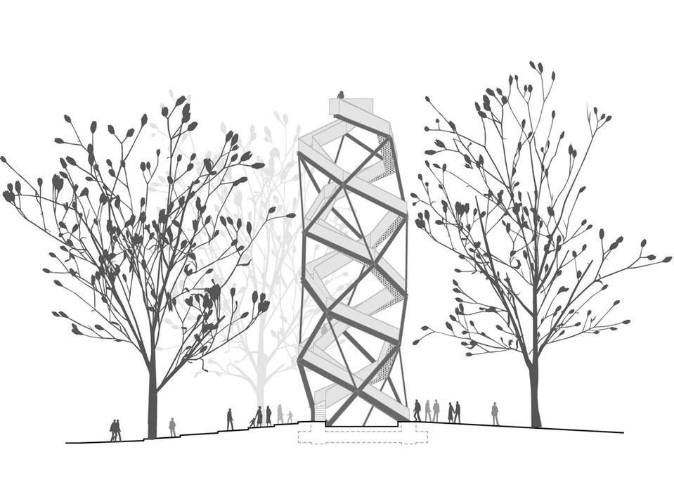Architects Klaus K. Loenhart and Christoph Mayr took inspiration from a design of castle from 1499 by Fredrich III of Hapsburg. They felt that the journey and experience of climbing the stairs to the top of the observation tower is as important and valuable as the achievement and satisfaction of reaching the pinnacle.