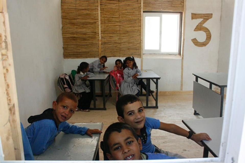 The designers act with realism. They use truly crude materials (lime plaster, straw, bamboo, clay, straw, a galvanized aluminum sheet) for the renovation of an existing building with nine classrooms. In this way, they create a building that can withstand the desert temperatures which, between November and February, drop below 10° during the day and hit 0 at night and which reach 45° between late April and June.