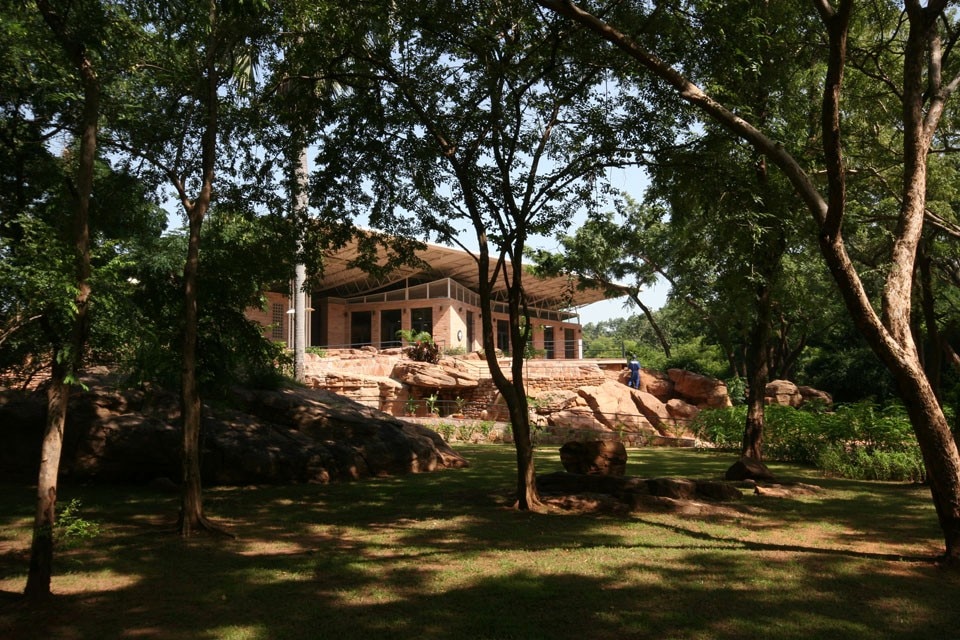 In his last two projects in Mali for the Aga Khan Trust for Culture – the Mopti visitors' center and infrastructure for the Bamako National Park – Kéré's buildings appear compact and lightweight at the same time. In Mopti, the visitors' center, completed in 2006 following the restoration of the Great Mosque, is constructed with blocks of compressed earth – not surprisingly, home to the Centre for Earthen Architecture. In Bamako, the volumes that house the park's lobby, restaurant and sports center are built in local stone and are at one with the ramparts of the surrounding rock.