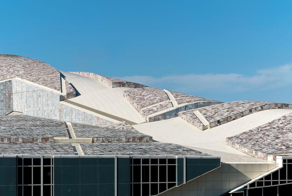 The figures are just as staggering: the site extends over 680,000 square metres, of which 220,000 square metres are being used for urban development; buildings occupy an area of 60,000 square metres, with a total constructed surface area of 140,000 square metres. The construction work should have finished in 2005, but the library (15,202 m2) and archives (11,225 m2) were opened on January 11, 2011, while the museum (20,734 m2), a music and performance centre (34,430 m2), an international art centre (13,685 m2) and general amenities (6,291 m2) have yet to be completed. It is hoped that the entire complex will be finished by 2017, with an overall cost that is said (off the record) to exceed 500 million euros—five times the original estimate.