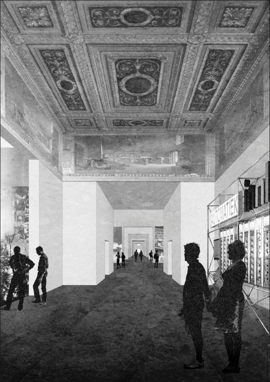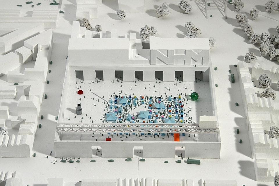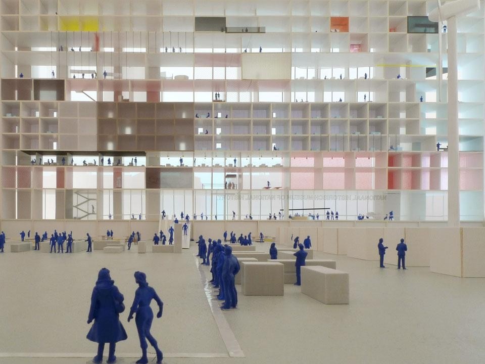 The commissioned architectural studies do not propose an exhibition layout, a curatorial program, or speculate on the museum building's potential role in its direct environment. They instead explore how the architecture of the National History Museum might orchestrate a balanced interaction between history and its visitors, without reducing the museum exclusively to a place of either education or entertainment. Sketched from the inside out to reflect on the relation of various publics with displayed works, these studies are designed to connect the museum's public spaces with the exhibition spaces themselves.