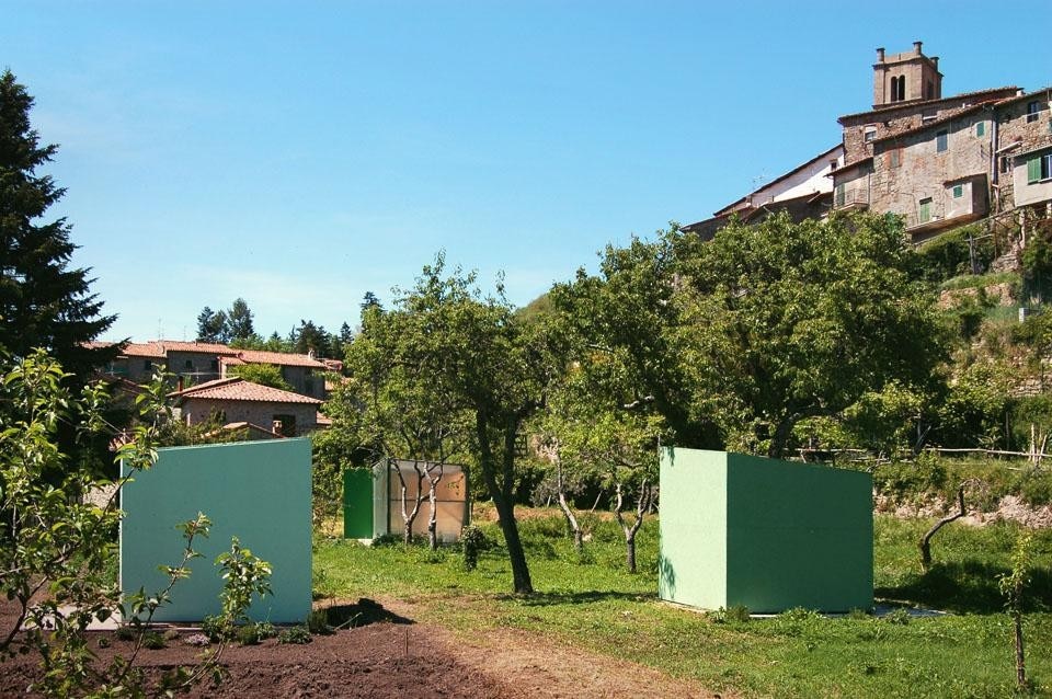 As luck would have it, during a site visit for the town's landscape restoration project, the designers (the practice 2TR Architettura) looked upon that very field where an old farmer observed the results of his day's work: he had finished preparing the ground where the next day, like every year at that time, he would be planting onions. Asked about the fate of his garden, the farmer, whose name was Fedro, complained bitterly that his children would not assume the care for it, and that the field would have to be abandoned or converted. Suddenly interested, they endeavoured to include the farm in the larger project for the town's environmental rehabilitation that had already been initiated. Since 2005, with the support of Santa Fiora's mayor and his staff, the project had implemented the recovery of numerous local landmarks that suffered years of neglect and indifference, including three monumental buildings, a mill, a church, monastery gardens, a nineteenth-century aqueduct and a ditch bed of the alluvial basins with its historic hydraulic works and water jacks.