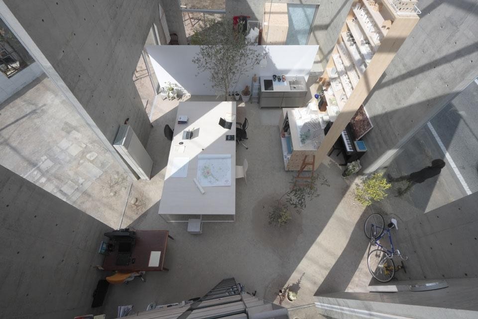 "I gave the name Ikimono ["being alive"] to my office, because I think that whatever is born, grows and dies can be considered a living creature". Takashi Fujino tells me about the inspiring motives for his work. Struck by the stylistic likeness of this building to the works of Tadao Ando, I ask him if he sees him as a master. "My masters are Omi Takashi and Haganuma Sei. I respect the work of Tadao Ando", he replies, "but I cannot consider him a master of mine, although I certainly admire Sumiyoshi House and the Church of Light".