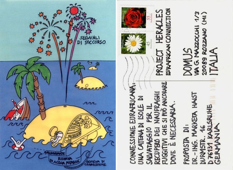 The profoundly ethical dimension of Lieven De Cauter's and Dieter Lesage's proposals (along with the 'impossibility' of the topic and the extreme synthesis of the postcard format) work as an effective means of contrast, revealing the fears, desires, tics, perversions, ideological drifts and fetishes of a meaningful sample of colleagues. At the same time, it allows the viewers of the two hundred 'projects' submitted to "Domus" to understand something about themselves, to take a sort of do-it-yourself test, as if, in their varying uncertainty, they were so many architectural Rorschach inkblots….