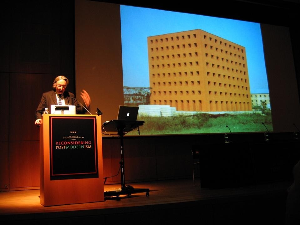 Ironically, the generation gaps that Postmodernism first revealed decades ago were evident at this conference as well, and the lack of representation from the emerging generation of participants and scholars, both on the panels and in the audience, resulted in an event that remained mostly retrospective. There was an undercurrent of contemporaneity, such as mentions of rapid urbanization and current economic conditions, mixed in with the delicious historical morsels, but it was usually only token comments or fleeting thoughts from single panelists. Media and pop culture are intrinsic to Postmodernity and inform most of our contemporary visual culture. Unfortunately they were painfully absent from discussions and very few projects completed after 1990 were included. This conference was more about trying to pin down the elusive what happened, and in that it was glorious and successful, but Postmodernism is an attitude that lives on, not a style that simply died off. In a Jencksian historical condition, good buildings can be made in any style, from contemporary classicism to parametric expressionism. The conference reiterated this notion through a comprehensive retrospective in which history was rediscovered and reconsidered to set the stage for new theory such as Radical Postmodernism, of which Wolfe claimed, with an experienced sense of wonder, "If it catches on, its gonna be a riot".