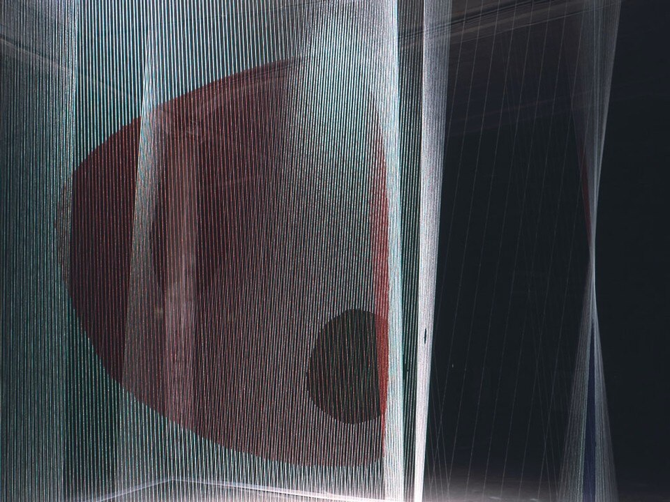 Our perception of architecture is affected by the physical experience of the relation of one's body to its surroundings and the image that our brain produces from the sensual impressions. The installation strives to make visitors aware of this relation by playfully questioning the basic geometric principles of architecture. It blurs the thresholds between line, surface and space. It offers a new perception of these three ideas and a new understanding of how much needs to be defined in order to make them perceivable. Impressions when moving through the installation are complex; the ambiguous overlapping of the threads - as single elements hardly visible - seems to make the space even more perceivable though.