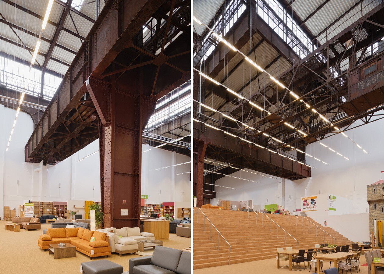 This was our first reaction as our client drove his black Porsche into the rusting cathedral of Hannover's 'U-boat Hall'. Was it a panic reaction at the end of WW II to build a submarine production space so far from the North Sea? The structure of the hall had in fact been originally designed for a U-boat production site of a naval dockyard in Wilhelmshaven. As it turned out the enigmatically named 'U-boat Hall' was only finished in 1944 and was thus not used for armament production.