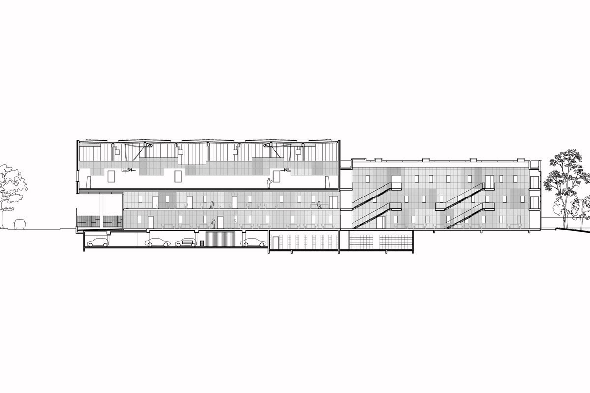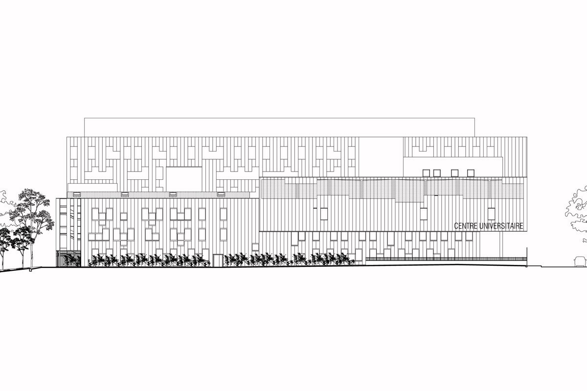 In this dense and developing environment, the centre was rebuilt around a central garden with four distinct volumes serving four different functions. The library, the gymnasium and the auditorium face the city and make up the Centre’s main façade, while to the East the monumental façade of the teaching wing marks the edge of the site.