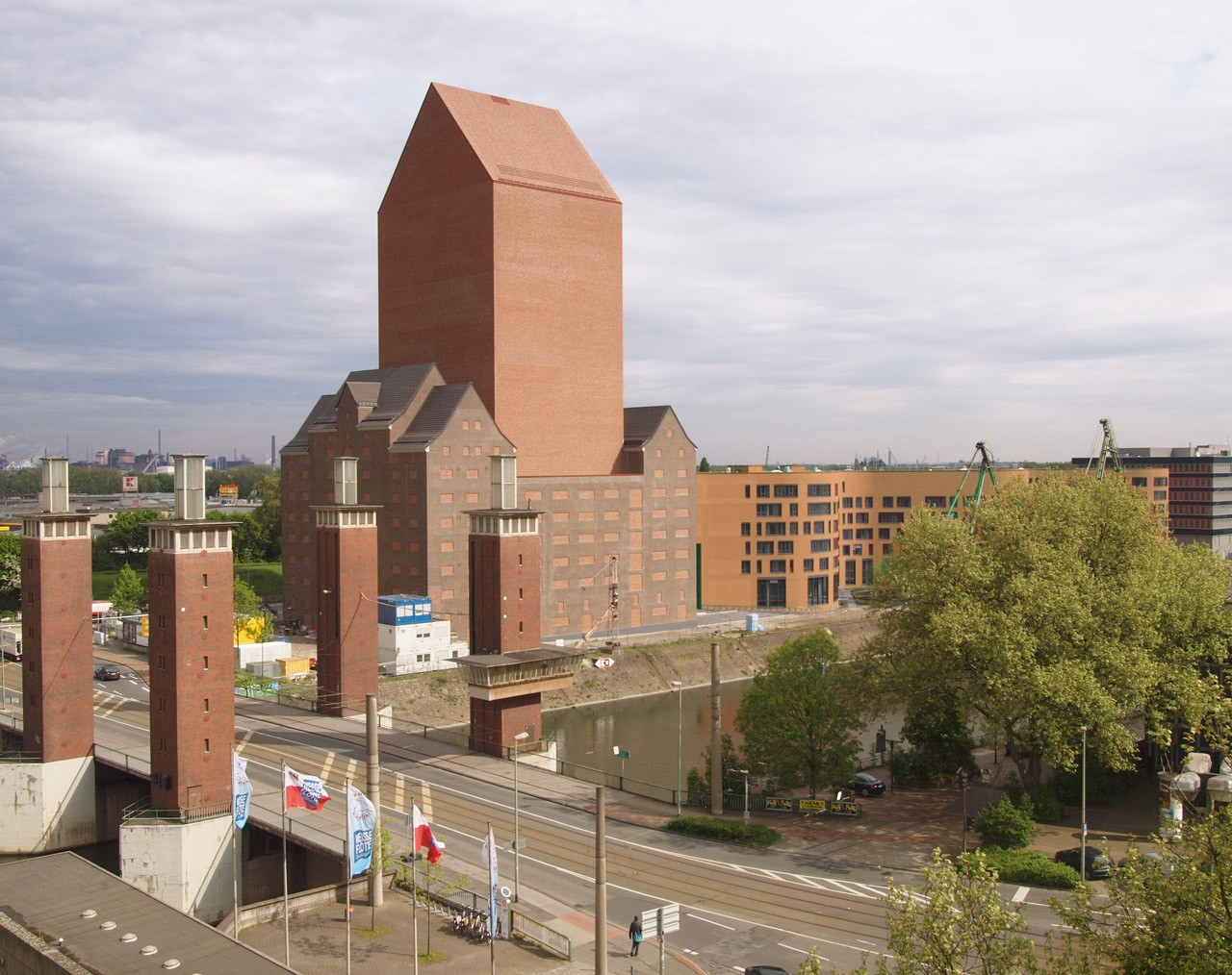 Towards the motorway and the inland port, the NRW State Archive presents itself as a prominent brick building.