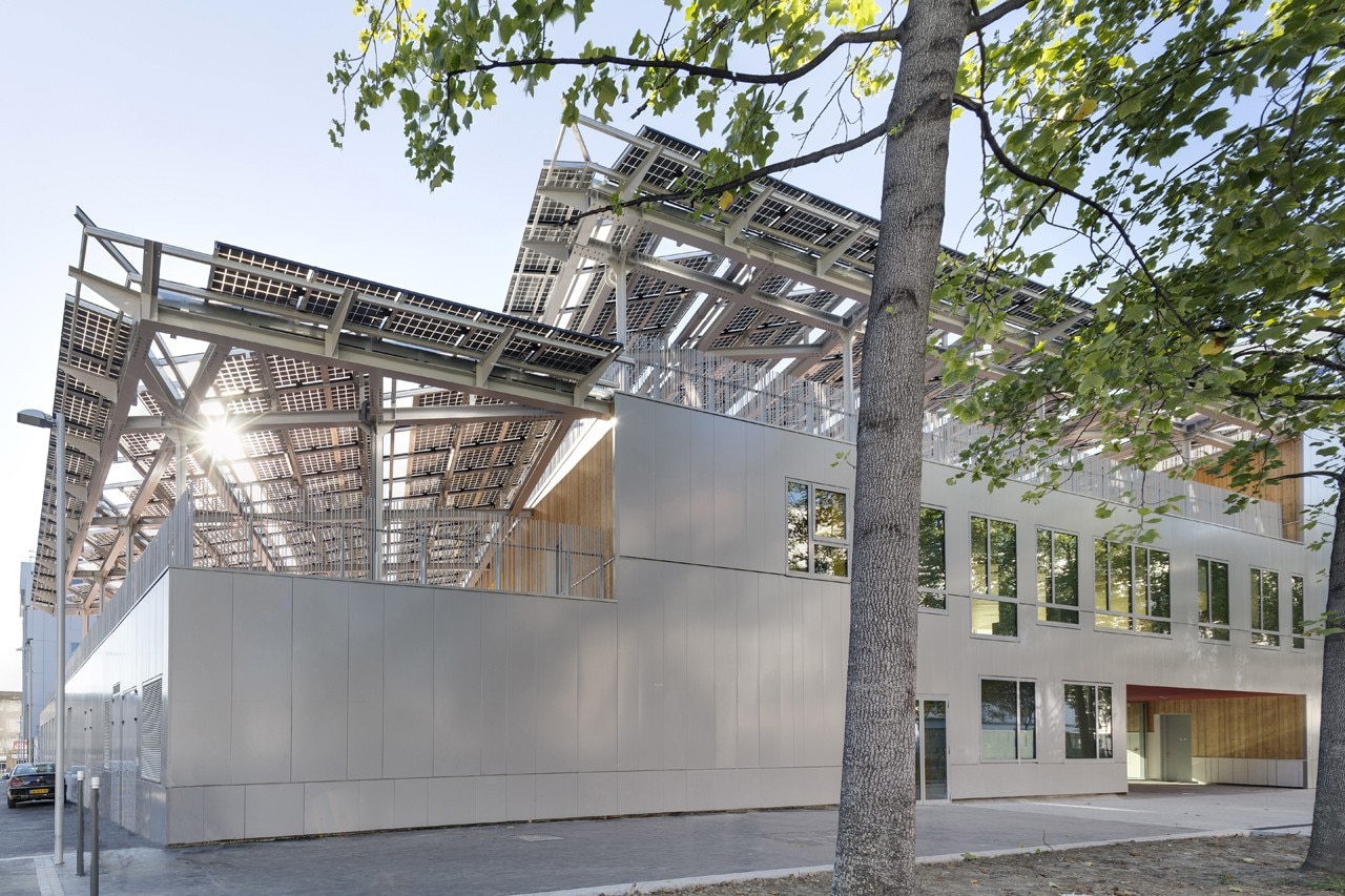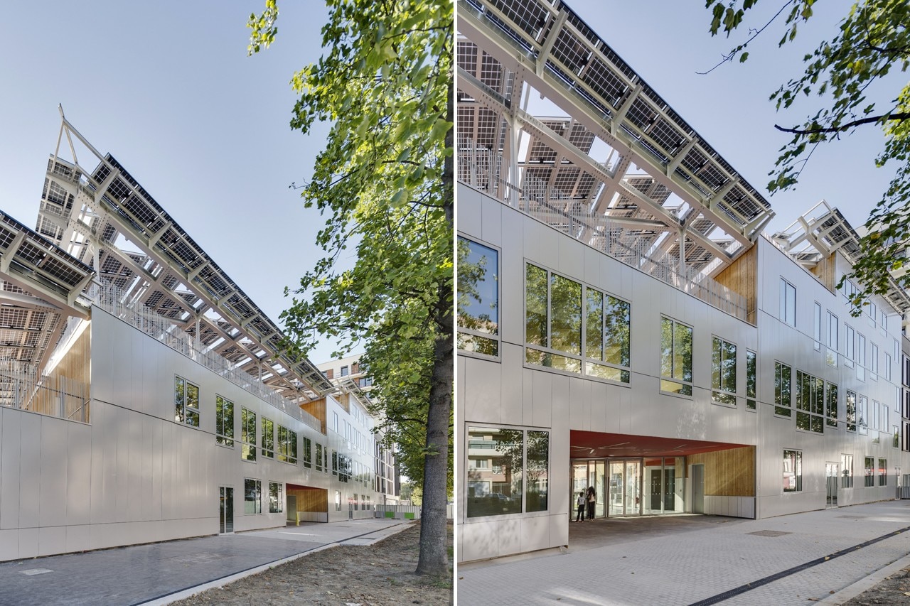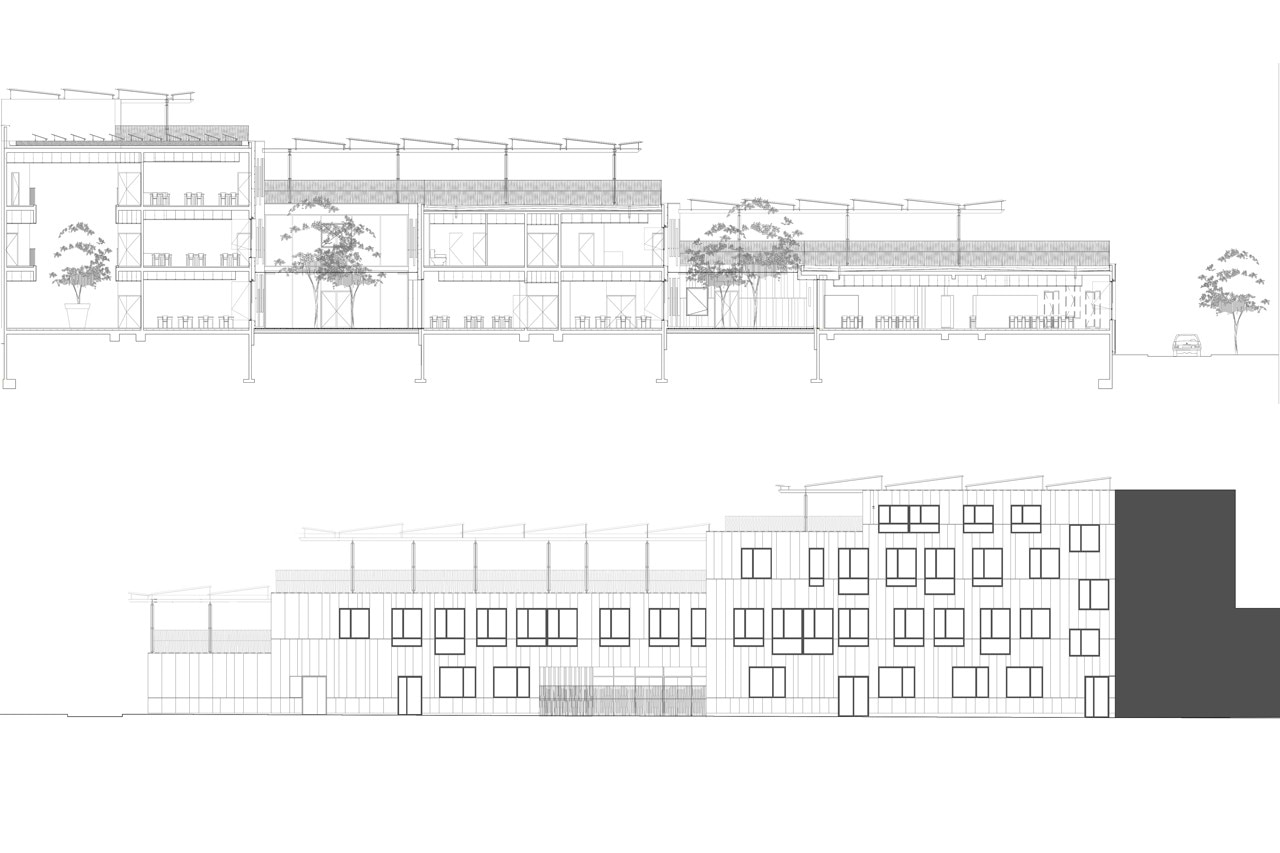 Mikou Design Studio, Zero Energy School, Saint Ouen, Paris, France, section and facade