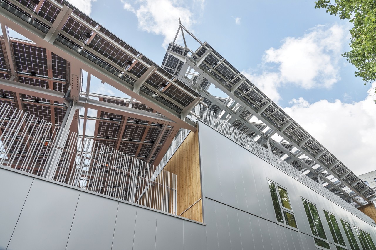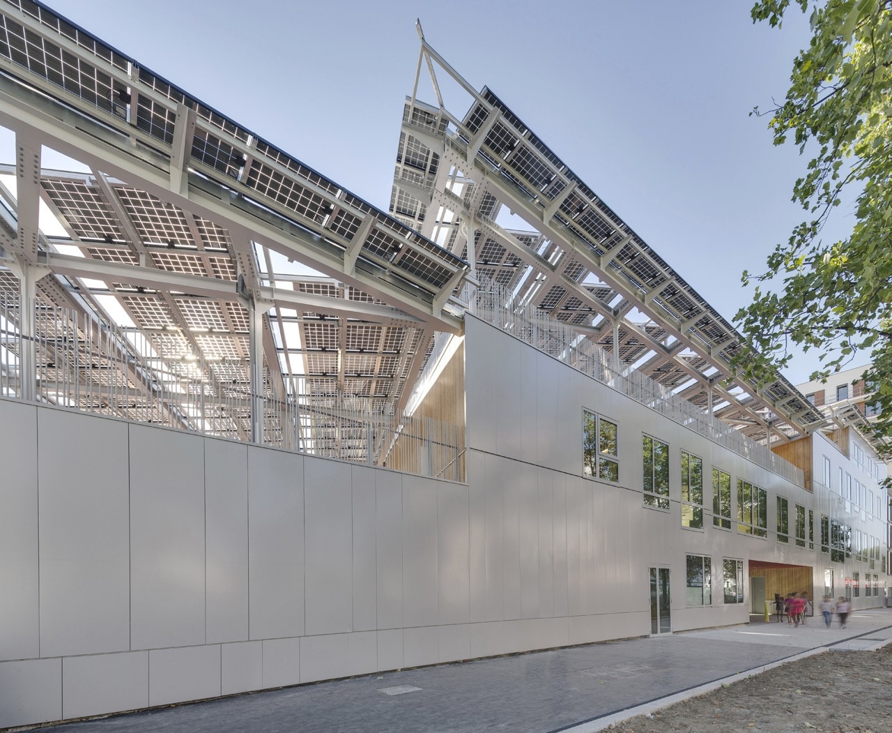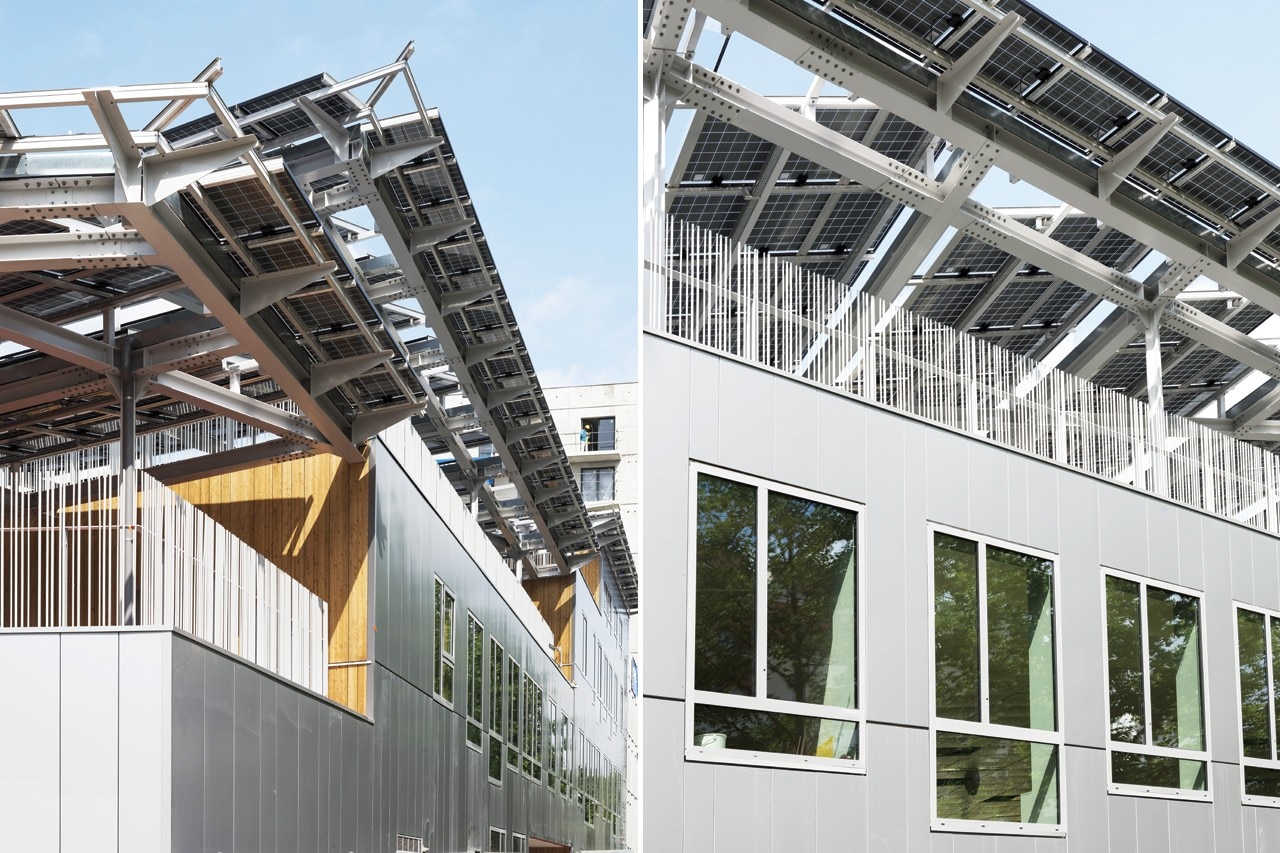 Mikou Design Studio, Zero Energy School, Saint Ouen, Paris, France, section and facade