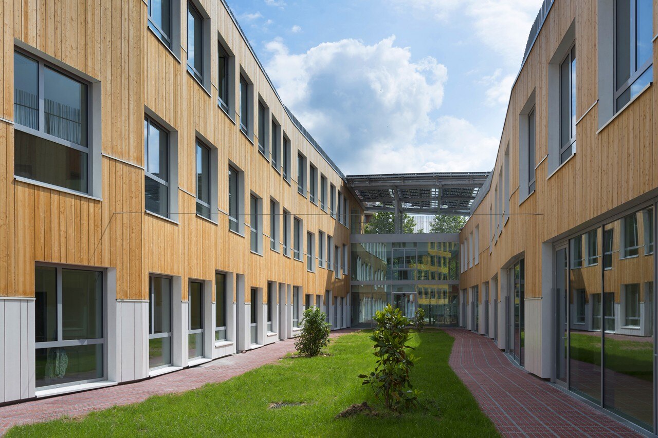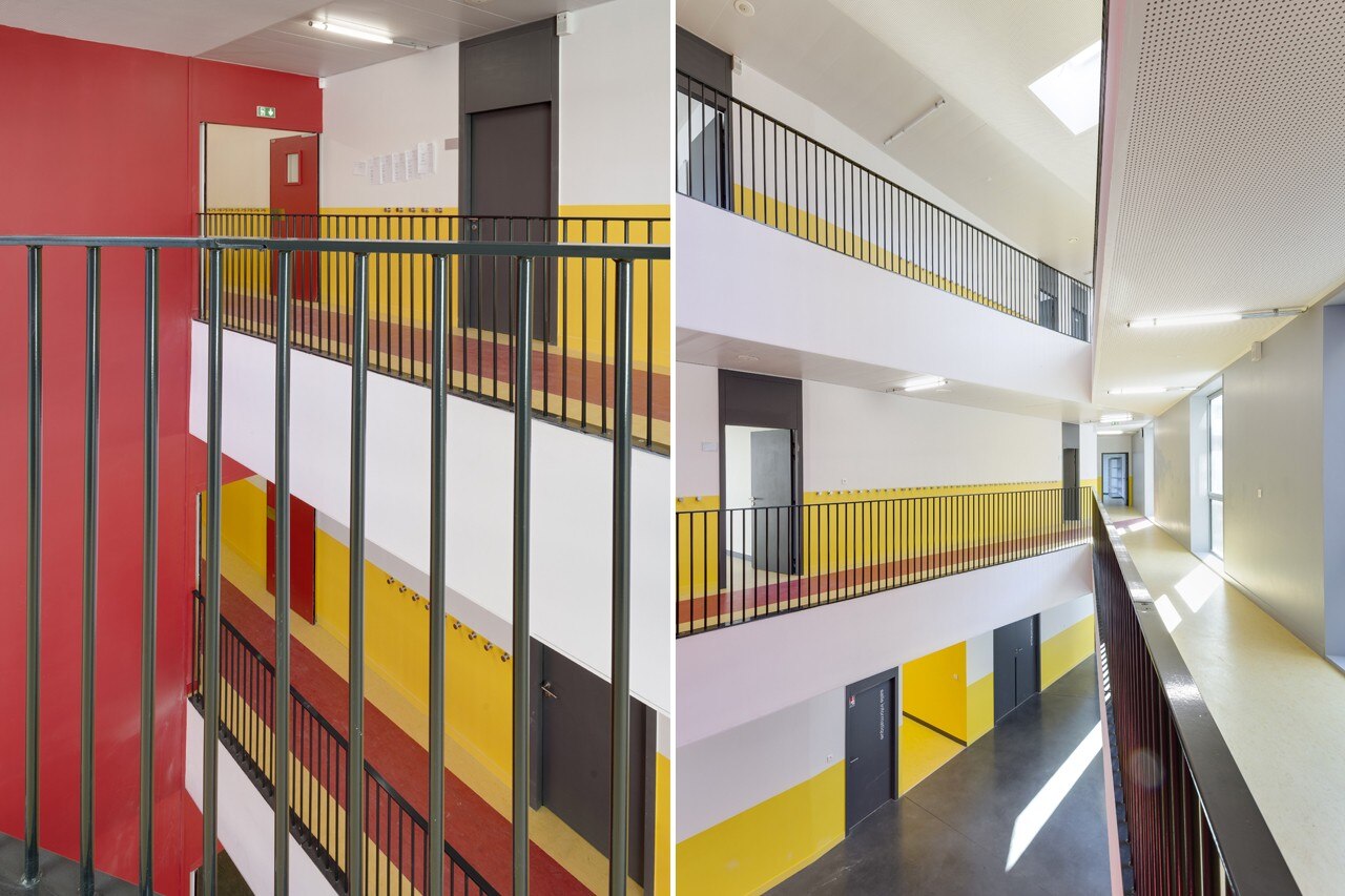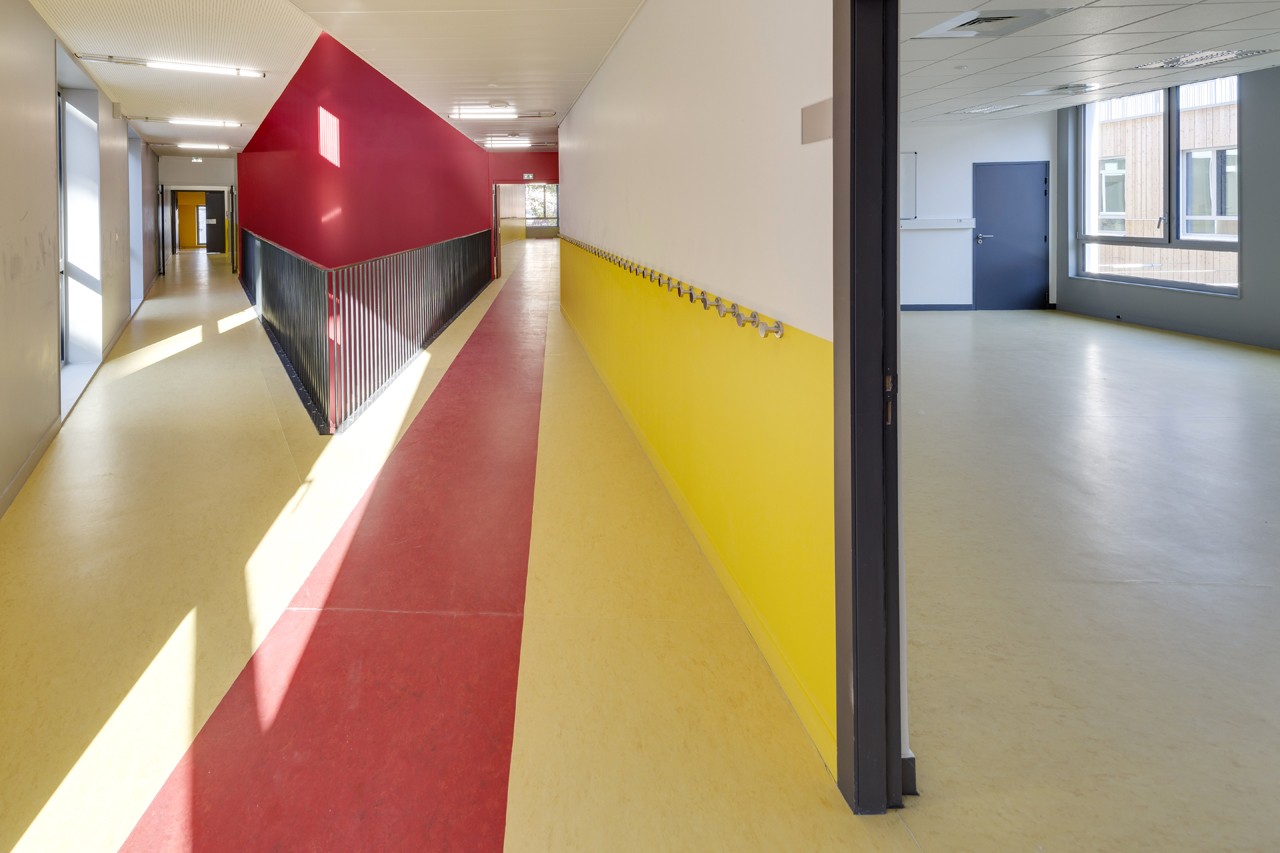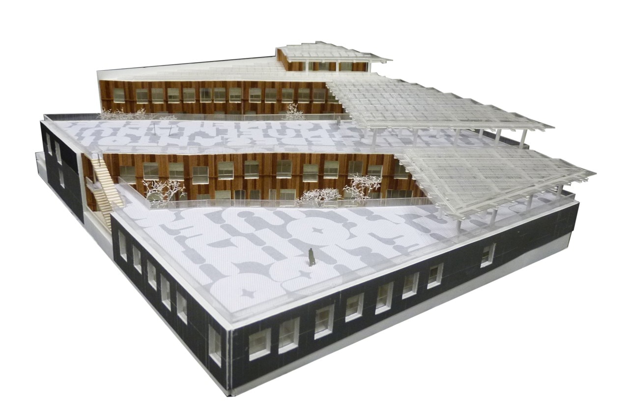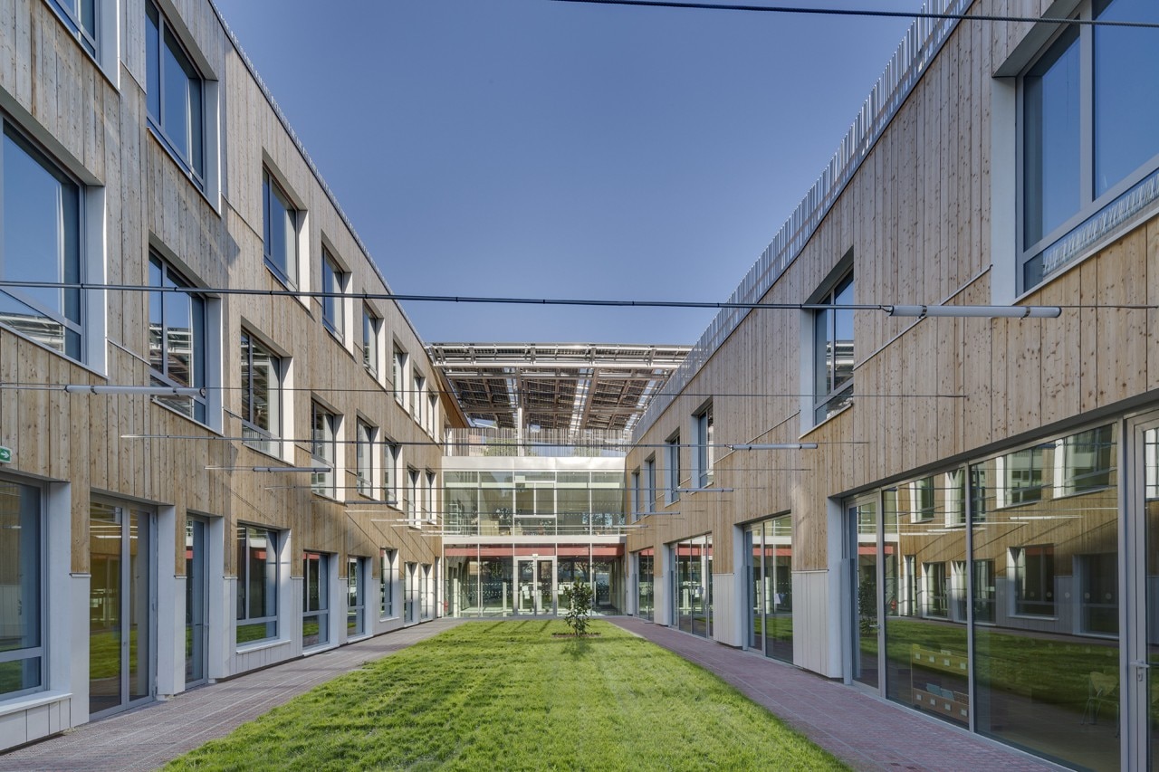 Facing southwards, the school is arranged in a succession of gardens and volumes in brightly-lit terraces which gradually descend to free the view and to let in maximum sunshine.