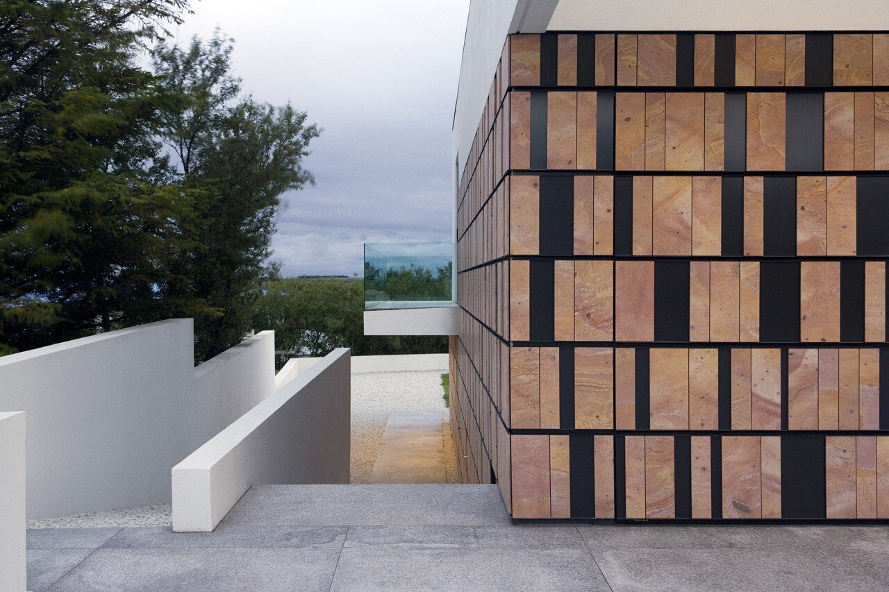 The house was conceived to appear from the street as a singular solid mass; with the entrance hidden from the street. By contrast, the rear side of the house, with private outdoor areas, has a sense of openness and permeability.