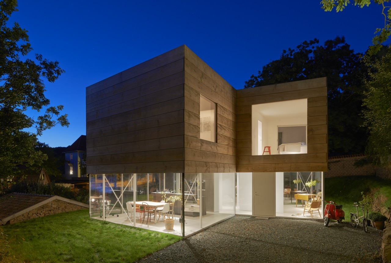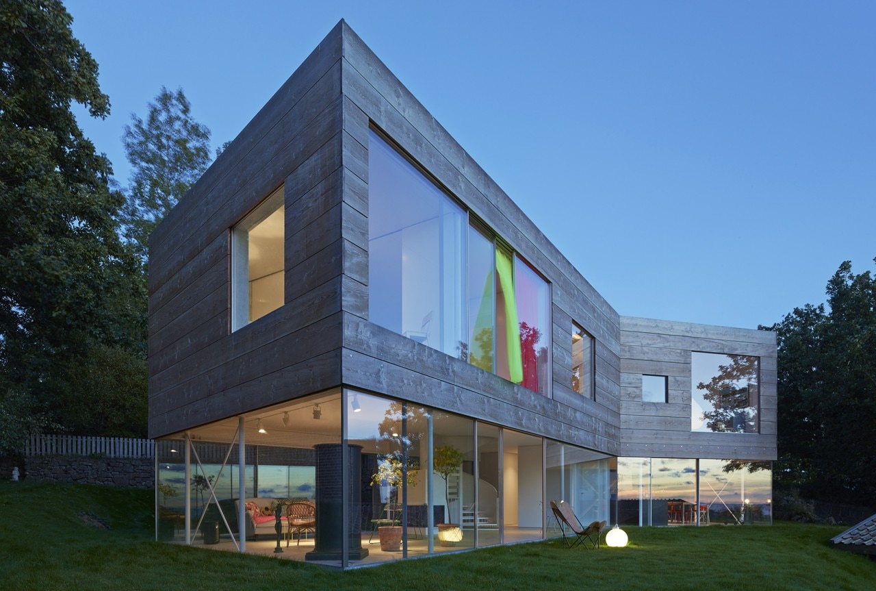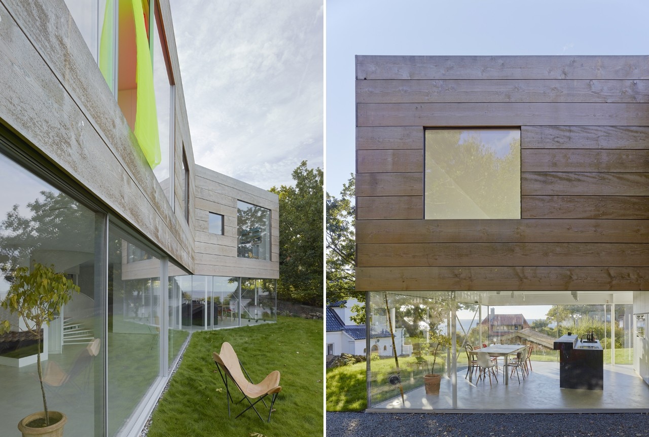 The building expresses both contrast and tenderness in relation to site and context. Its volume has been kept low, without any plinth or pitched roof. Facing Öresund, the terraced site has an ocean view, but the building questions the convention to turn all rooms towards that same view – the site has many qualities all around, with stone and brick walls, vegetation, and an old ice cellar semi-submerged into a hill.
