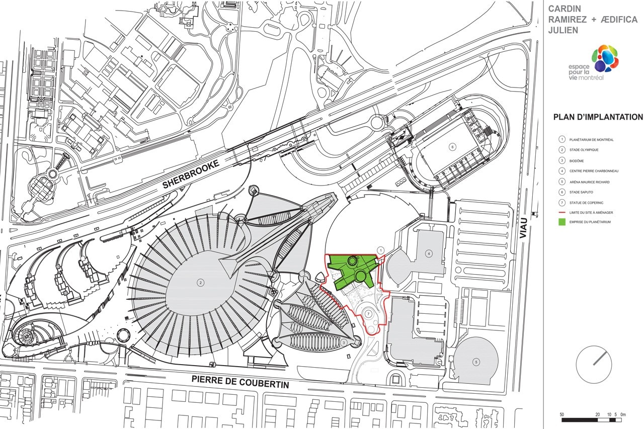 Cardin Ramirez Julien + Ædifica, Rio Tinto Alcan Planetarium, Montréal, Québec. Siteplan