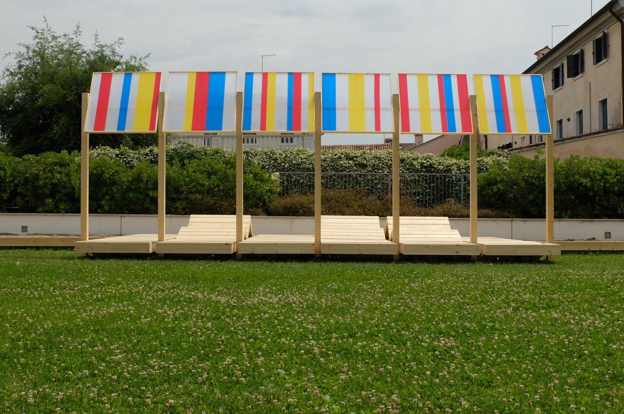 Architettando concentrated its design action on the roof of an underground car park, within the city walls in Campo di Santa Marta, transforming a portion of the green expanse into a decontextualised beach by revisiting the concepts of the jetty and sun-lounger, introducing sand where it has never been. This allowed people to breach the forced boundary of the pavement around the project zone without feeling guilty.