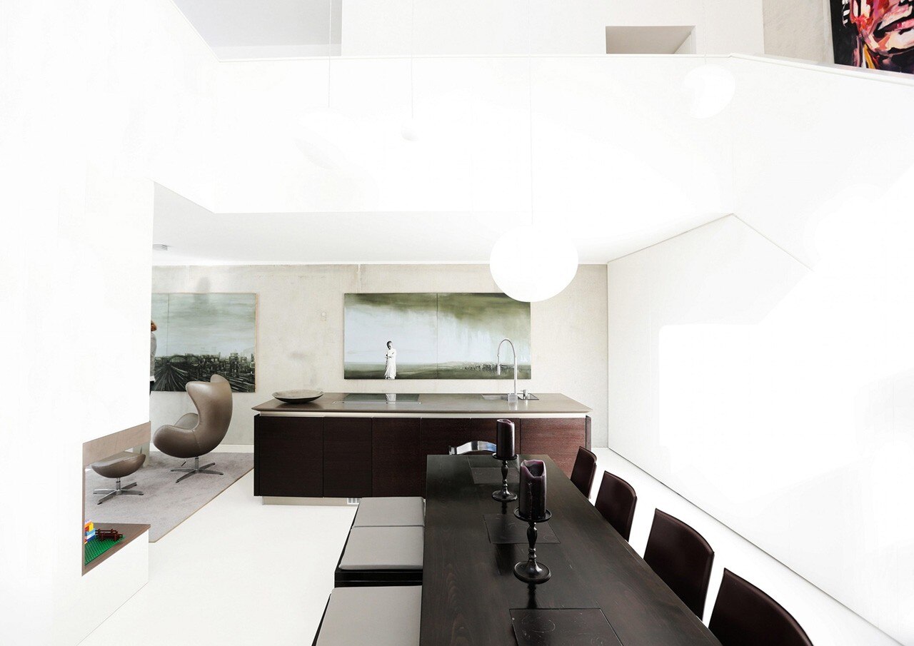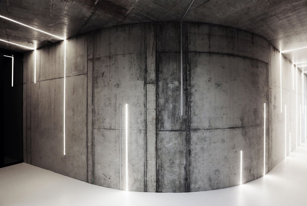 The white, fine-grained and seamlessly plastered walls (ETICS) abandon the boundaries between interior and exterior spaces and let the individual buildings seem basic, abstract and sculptural by the way of the sharp edges of the building corners (waterproof Sto boards as a cover).