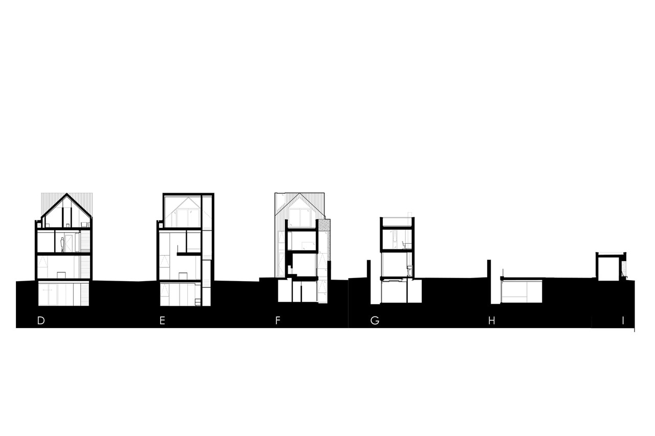 The design embraces the iconic, house-like forms in the existing streetscape and reinforces the setbacks, materials, and relationship with grade. However, it puts forward a contemporary example of home. The third floor is set back at the front and rear in order to match existing massing on the street. The massing provides opportunities for green roof terraces at the east and west ends and privacy for the third floor spaces.